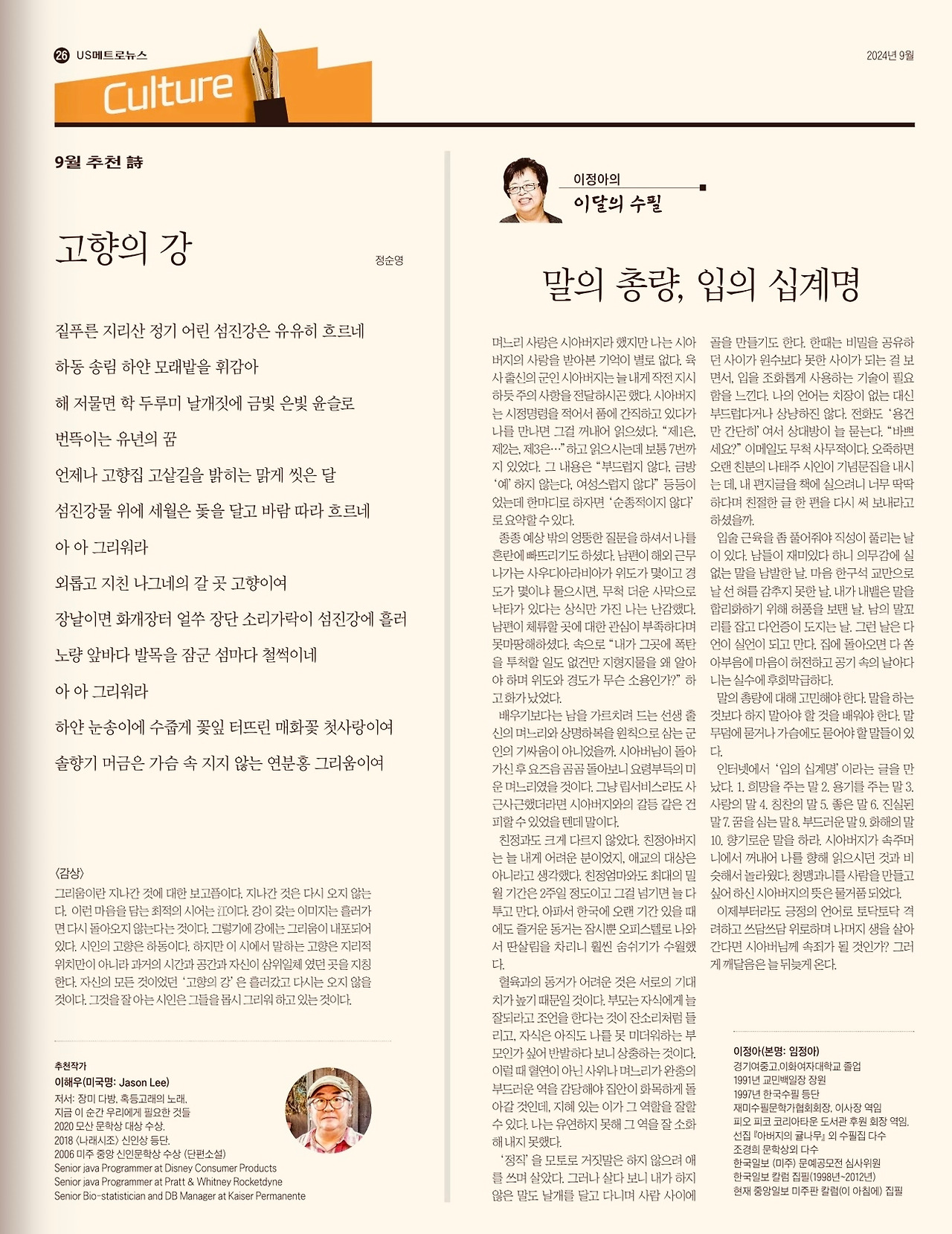 #USmetronews#이달의수필#2024년9월