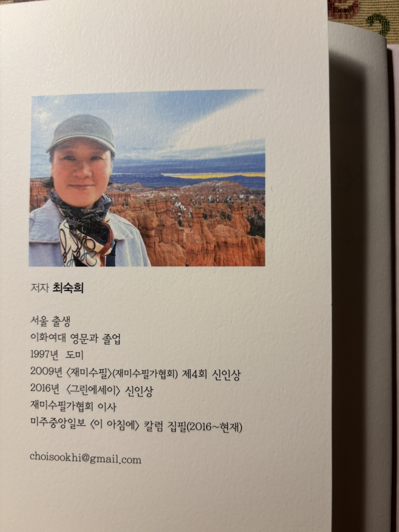 최숙희 수필가의 초창기글부터 모두 읽어왔기에 어떻게 글이 발전해 왔는지 옆에서 지켜볼 수 있었다. 여러 장르를 넘보지 않고 수필 하나만 붙들고 진지한 고민을 하는 이의 글이 좋을 수밖에 없는 건 자명한 일이다.