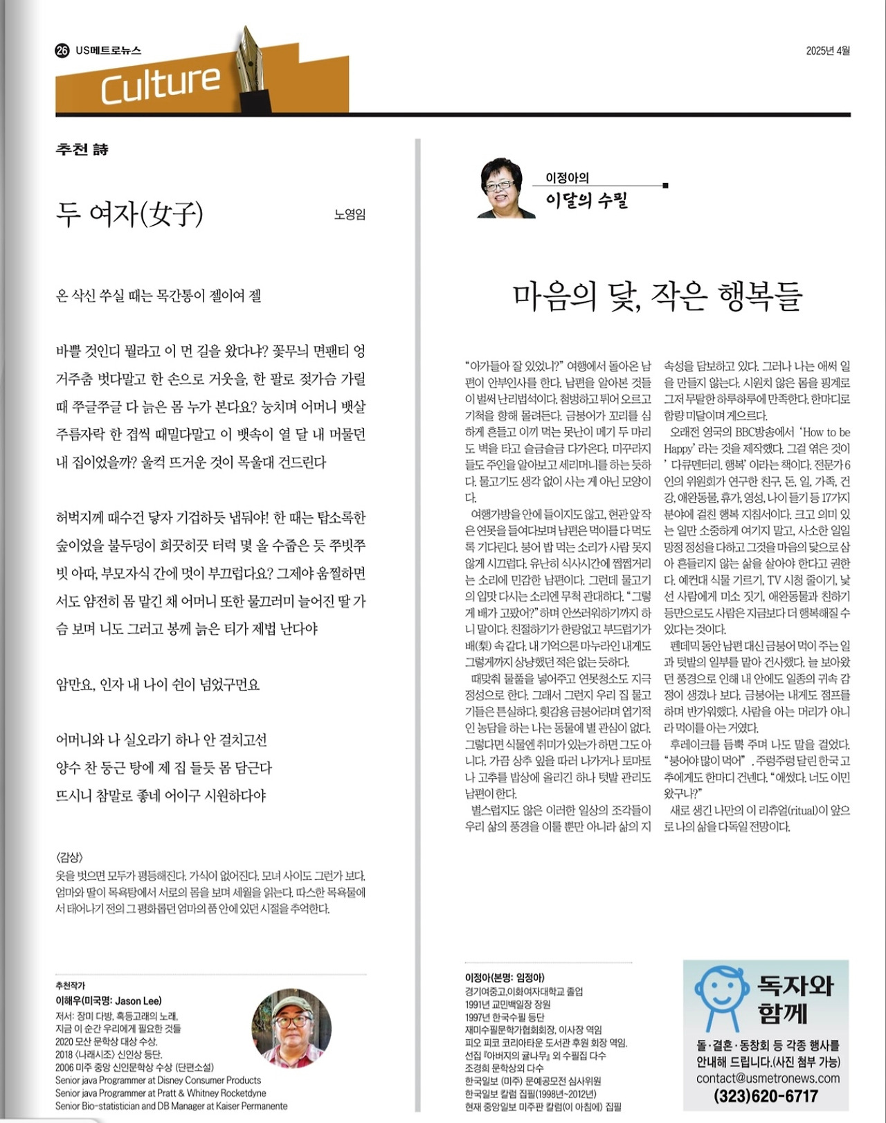 #usmetronews#2025년, 4월#이달의 수필
