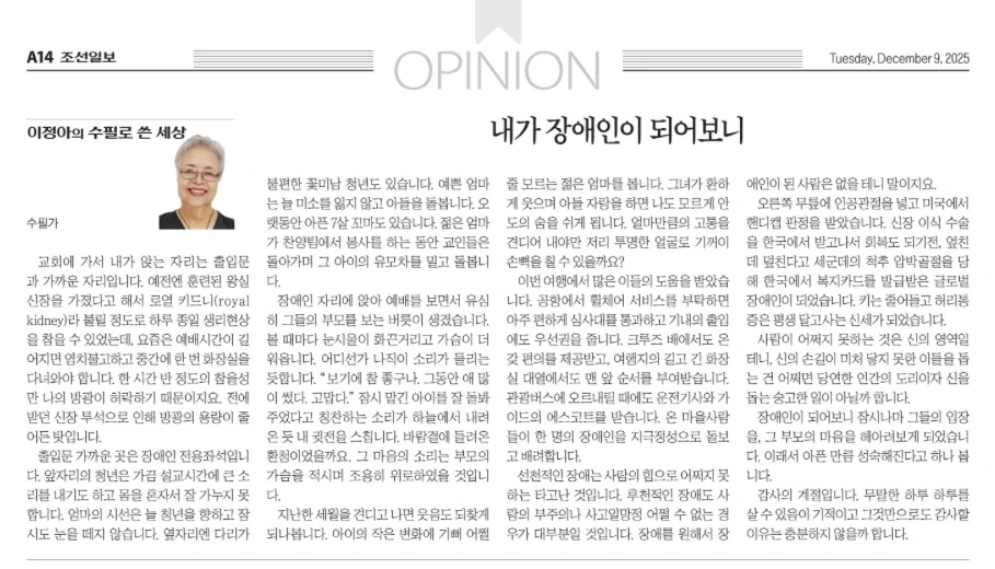 장애인이 되어보니 잠시나마 그들의 입장을, 그 부모의 마음을 헤아려보게 되었습니다. 이래서 아픈 만큼 성숙해진다고 하나 봅니다.