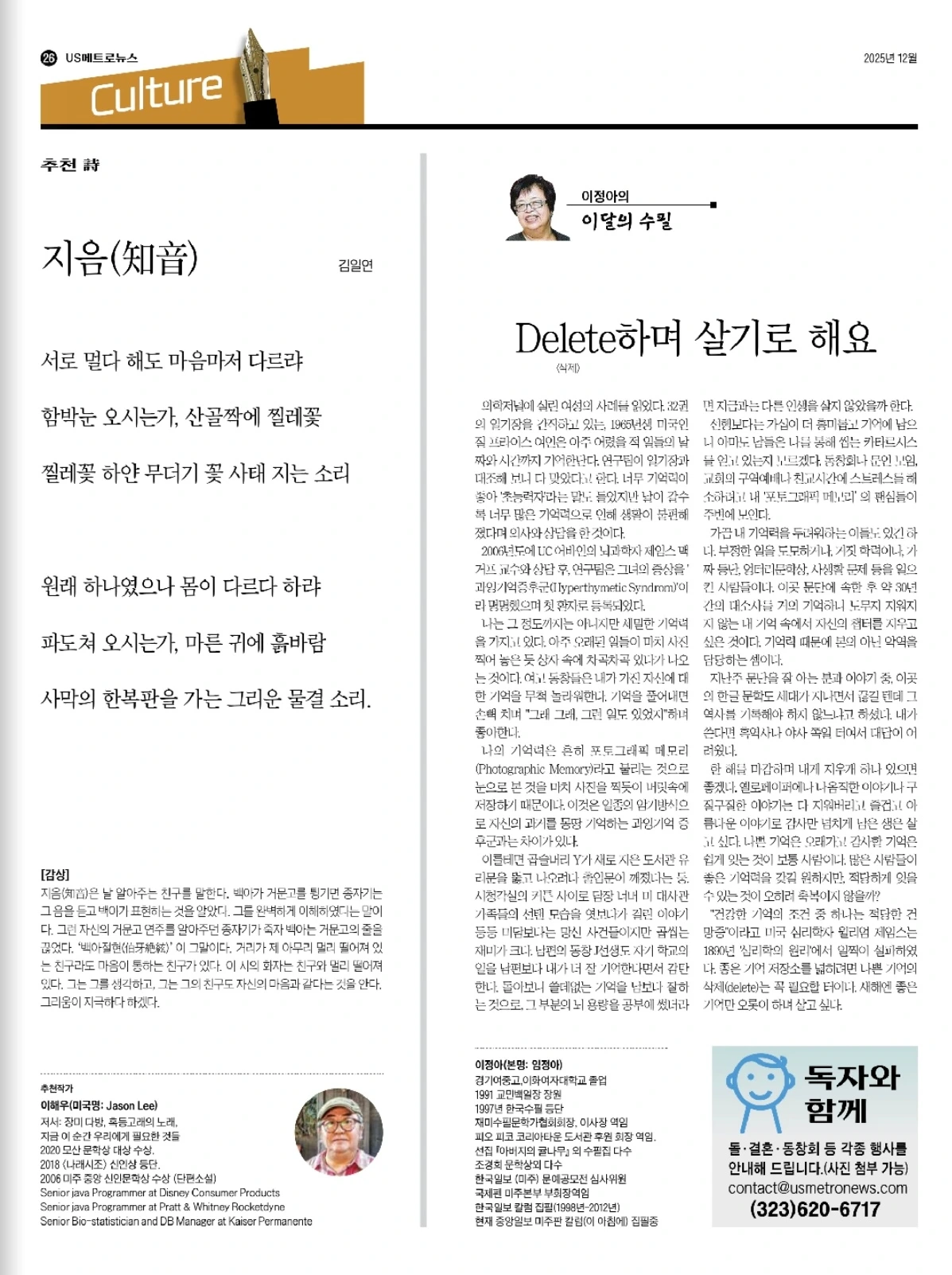 USmetronews, 12월 2025년, 이달의 시와 수필