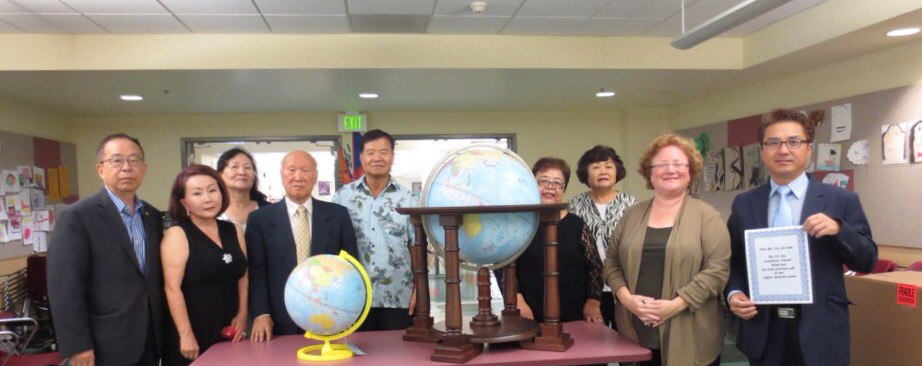 15일 광복절 당일엔 피오피코 코리아타운 도서관에서 지구본을 기증받는 행사를 주관했다. 한인 사업가가 기증한 대형지구본이다. 시중의 지구본은 70% 이상이 동해를 'Sea of Japan'으로 표기하는 데 반해 김 사장님이 기증한 이태리산 조폴리(Zoffoli) 지구본은 유일하게 'East Sea'로 단독 표기된 것이다. 반가운 나머지 여러 공공기관에 기증하는 뜻 깊은 일을 하신다.