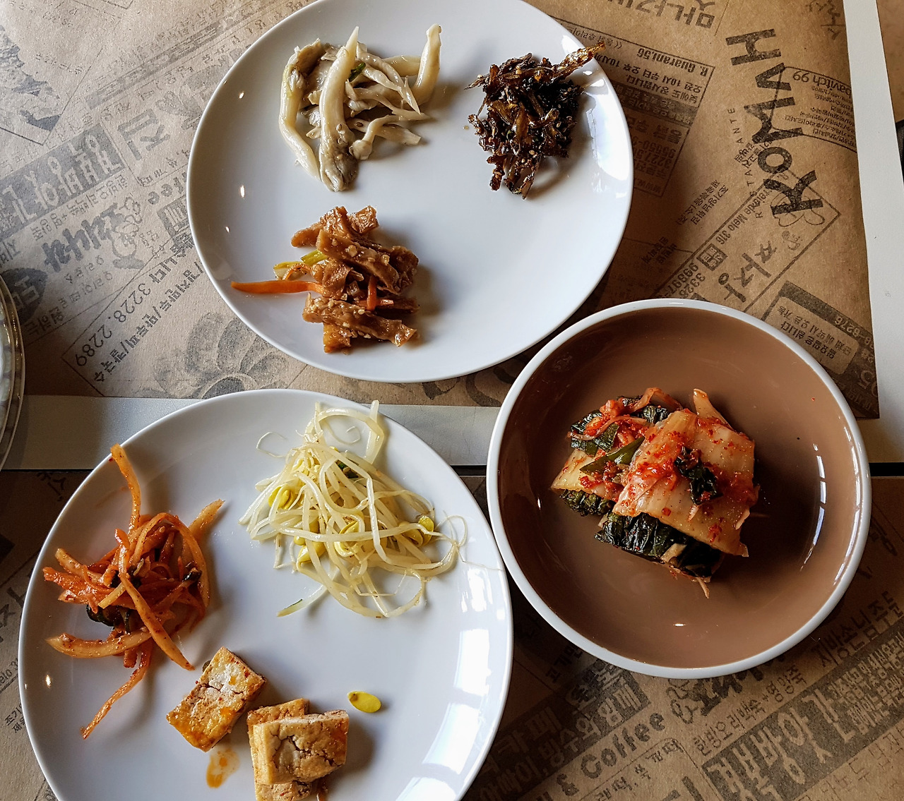 반찬 하나당 2불 넘게 받는 것은 우리 한인 기준에는 맞지 않지만 반찬을 애피타이저로 여기는 브라질 사람에게는 생소하고 특이하게 느껴질 것이다. 재미있는 것은 반찬을 세트로 주문할 수 있고 쌈과 오믈렛도 하나의 요리로 따로 주문할 수 있다. 무엇을 먹을까 고민하던 중 시식메뉴(Menu Degustacao)가 있다고 해서 두 개 주문했다. 시식메뉴는 이 식당에서 파는 주요리를 시식할 수 있게 모두 조금씩 주는 것이다. 아내와 나 둘이 주문했는데 먼저 반찬 세트가 기본으로 나오는데 맛은 우리가 흔히 아는 한식 바로 그 맛이다.