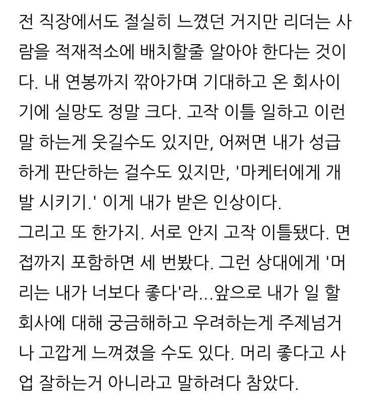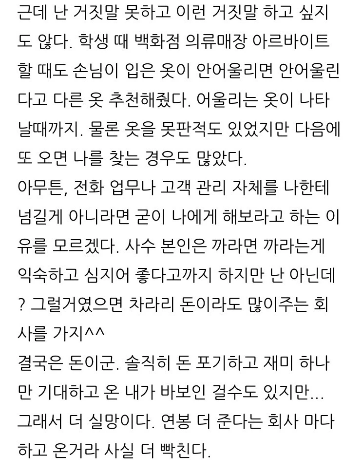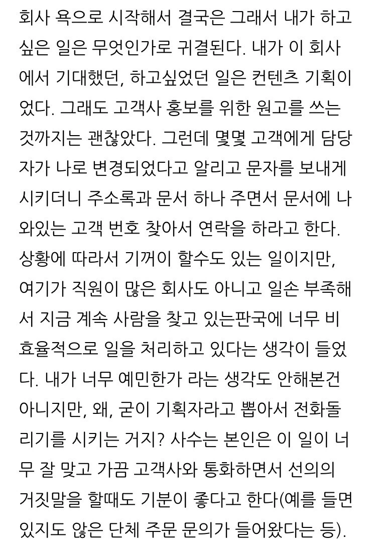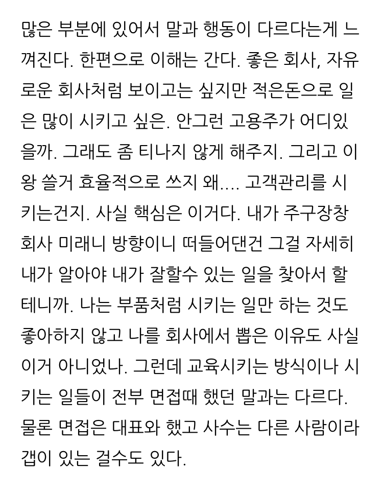 이번엔 대표가 당황했고, 내가 쓴 회사 욕 하나하나에 대해 변명을 하기 시작했다.