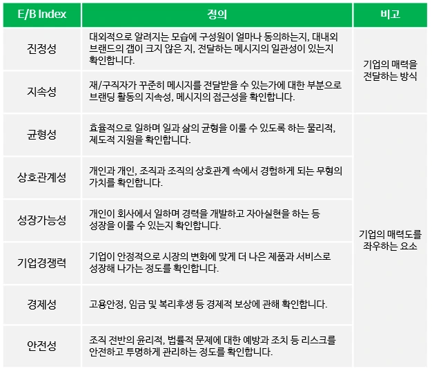 *E/B Index : Employer Branding Index(고용주브랜딩 지표)