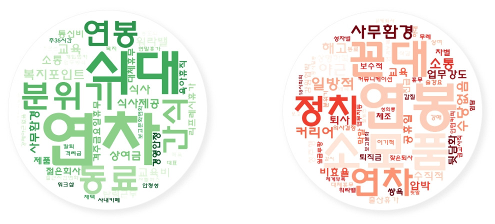 코로나19에 적절히 대응하는 기업과 그렇지 못한 기업에서 나타난 키워드는 무엇인지 재직자의 리뷰를 통해 분석해봤습니다.
