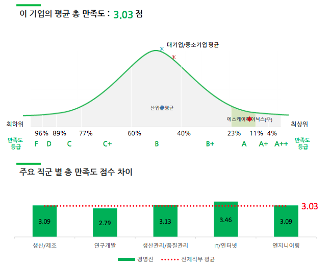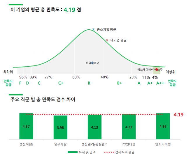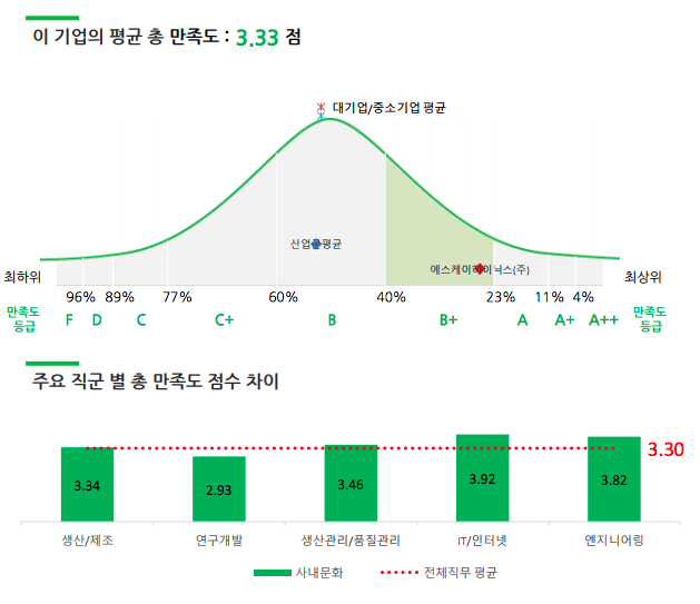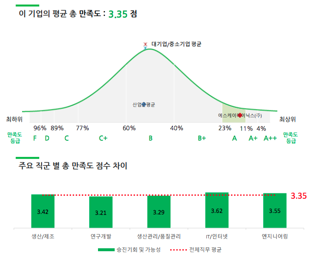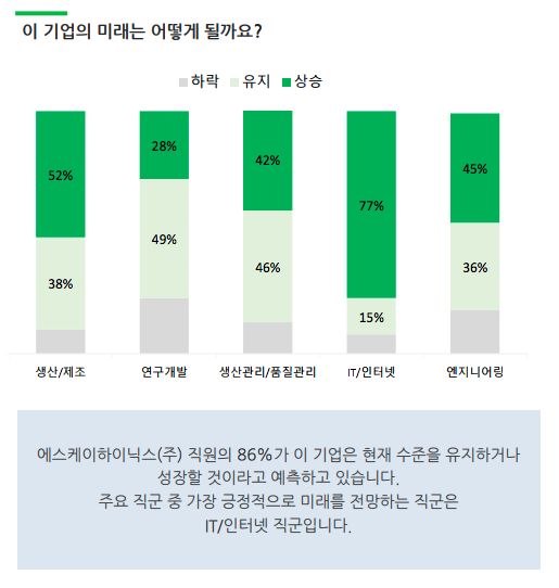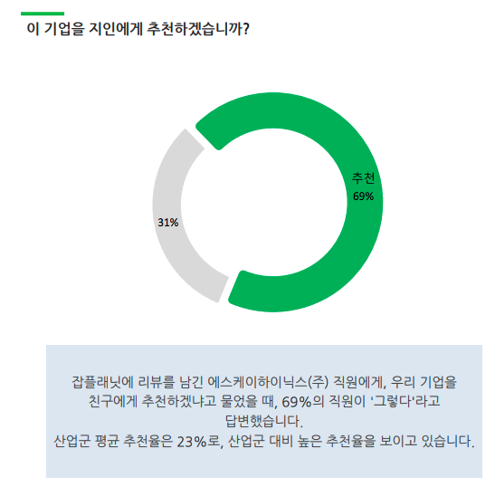 먼저, SK하이닉스의 내부 직원이 생각하는 지인 추천율과 성장 가능성을 알아보겠습니다.