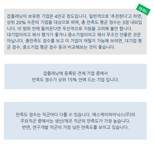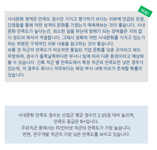 기업의 장단점과 기업 문화와 직무 만족도 등 입사 지원을 결정할 때 도움을 드릴 수 있는