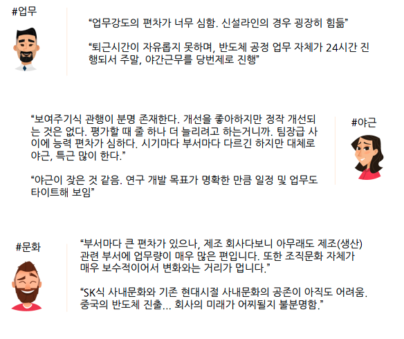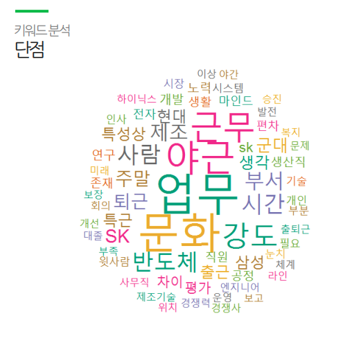 SK하이닉스 기업 리뷰 중 단점으로 언급된 키워드도 알아보겠습니다.