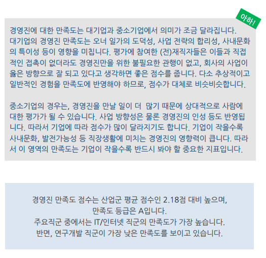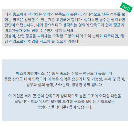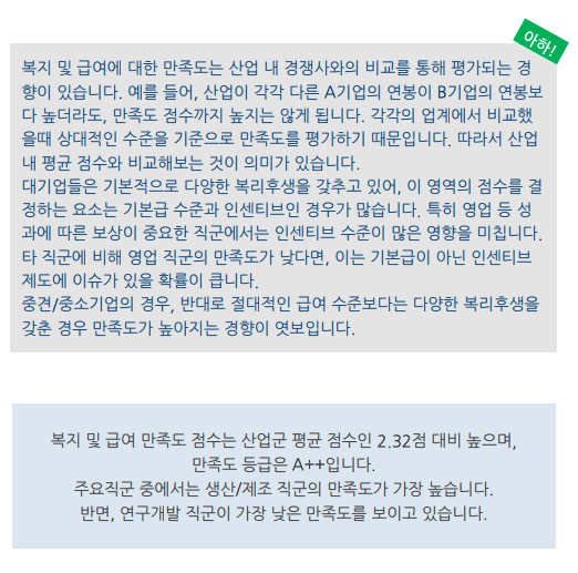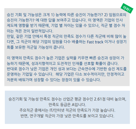 ※ 기업의 내부 조직구조 및 승진제도에 따라 상이할 수 있으며, 근속연수가 아닌 성과 위주의 승진제도를 더 우선시하는 회사의 경우 해당 영역의 만족도는 상이할 수 있습니다. ※