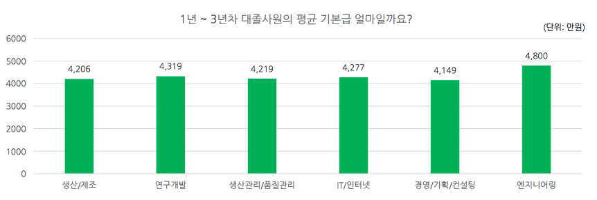 대졸 사원의 평균 연봉 값이며, 직무에 따라 연봉 차이가 있을 수 있습니다.