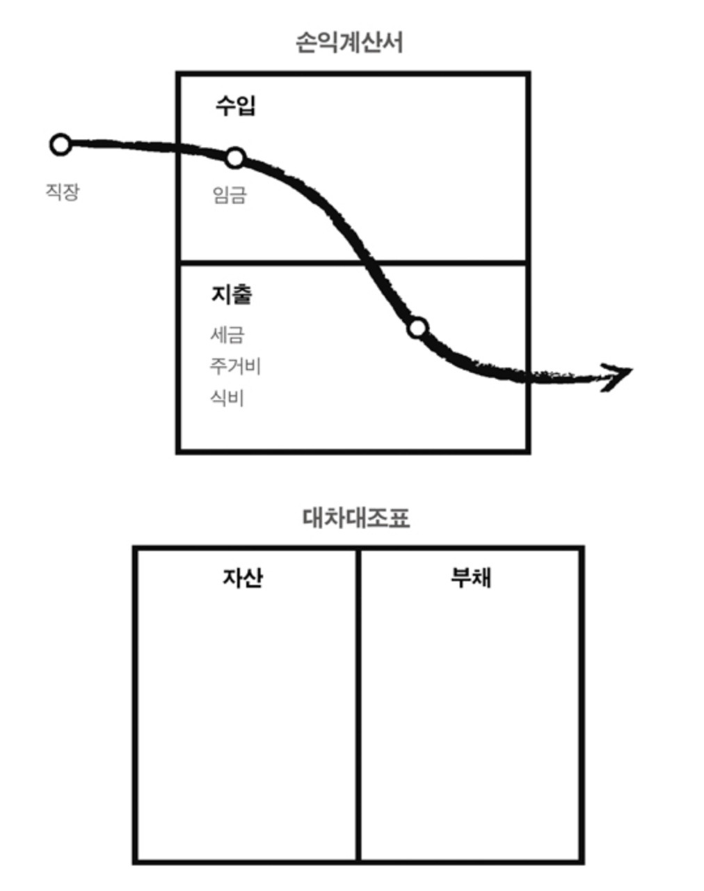 이번에는 흐르던 현금을 잠시 중지시키고 부자와 그렇지 않은 자의 재정상태를 이해해보자.