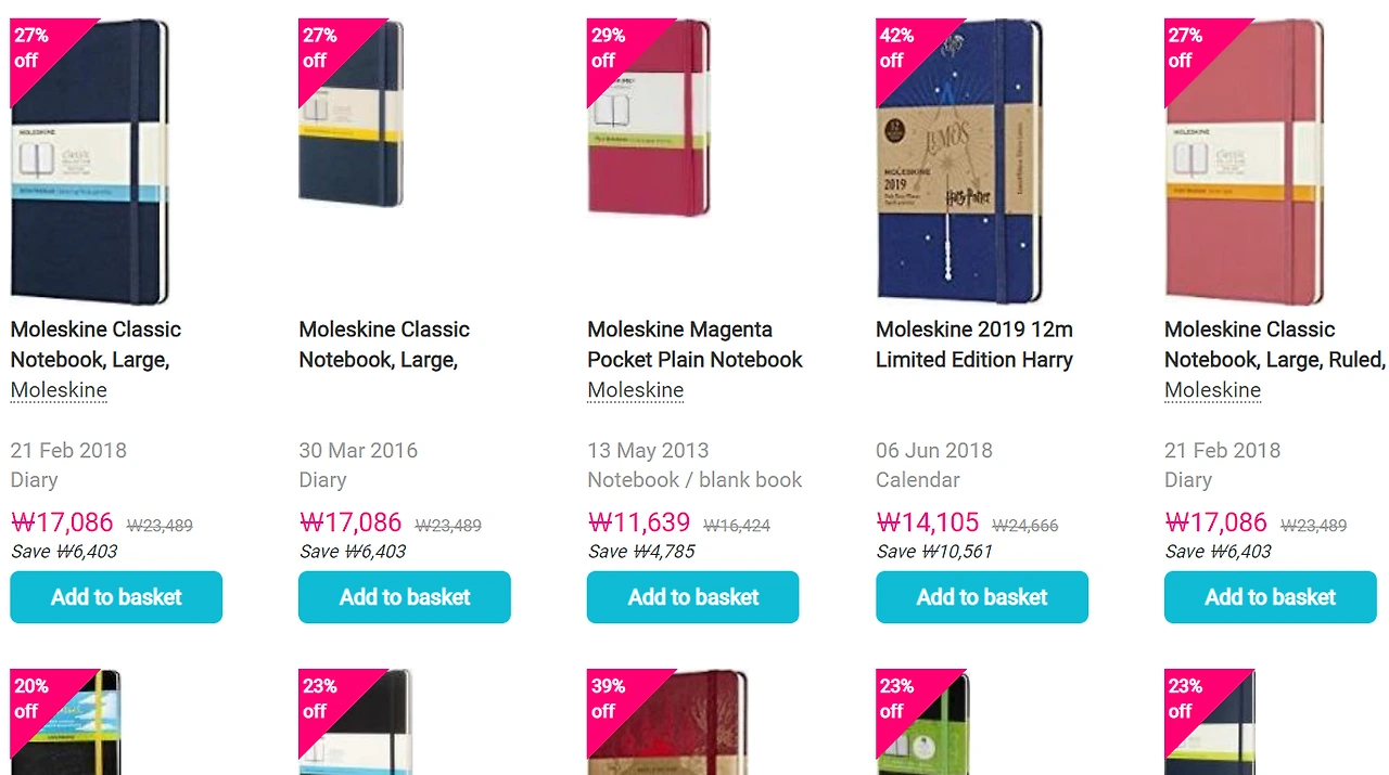 북디파지토리는 영국의 온라인 서점이다. 책 한권이라도 전세계 무료배송을 해주는 아주 파격적인 서점이므로 지루한 배송기간을 견딜 수만 있다면 한번 이용해 보는것을 추천한다. 검색창에 'Moleskine'을 검색하기만 하면 각기 다른 할인률을 자랑하는 몰스킨 다이어리를 만날 수 있을것이다. 직구 방법은 아마존보다 쉽고, 페이팔 결제도 가능하다.