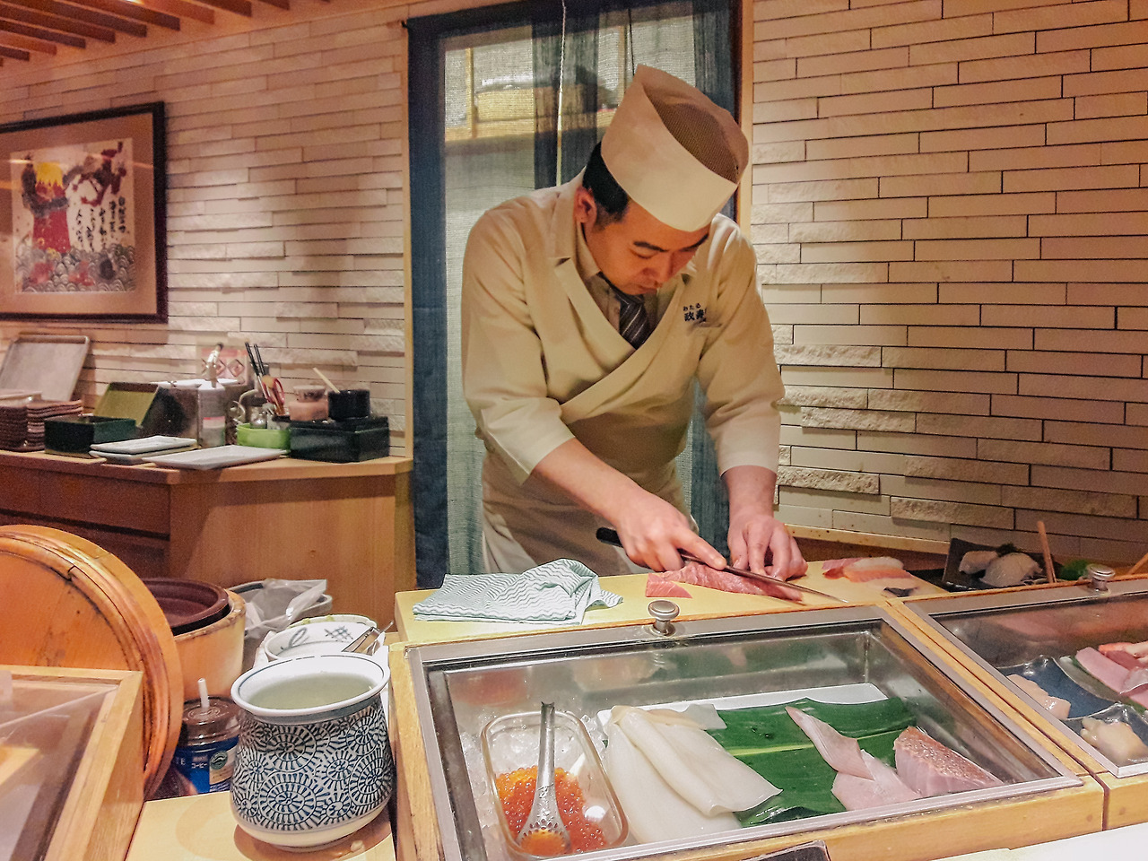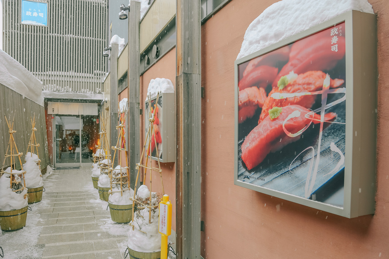 조식을 대강 먹으며 점심을 기대했다. 점심 메뉴는 초밥이었다. 그것도 《미스터 초밥왕》(원제: 将太の寿司, 쇼타의 초밥)에 영감을 주었다는 마사즈시(政寿司)에 가기로 했다. 마사즈시는 홋카이도 오타루에 본점을 둔 초밥집이다. 1935년에 처음 문을 열었고, 지금은 3대째 가업으로 운영 중이다. 홋카이도산 해산물 중심의 정통 에도마에 초밥이 메인이다. 《미스터 초밥왕》의 작가 테라사와 다이스케는 작품 구상을 위해 일본 각지의 초밥집을 취재했는데, 마사즈시 본점도 실제로 방문했다. 이곳에서 초밥을 먹고 오타루의 초밥 거리를 상상하면서 작품을 구상했다고 한다. 그렇다고 만화와 공식적인 라이선스나 컬래버레이션 관계는 아니다. 식당은 단순히 작품의 모티브 정도 됐을 뿐인데, 여기 사장님이 이걸 마케팅으로 기가 막히게 잘 활용하고 있다. 그래서인지 《미스터 초밥왕》 팬들 사이에선 이곳에서 초밥을 먹는 게 일종의 성지순례처럼 여겨지고 있다. 나 역시 마찬가지.