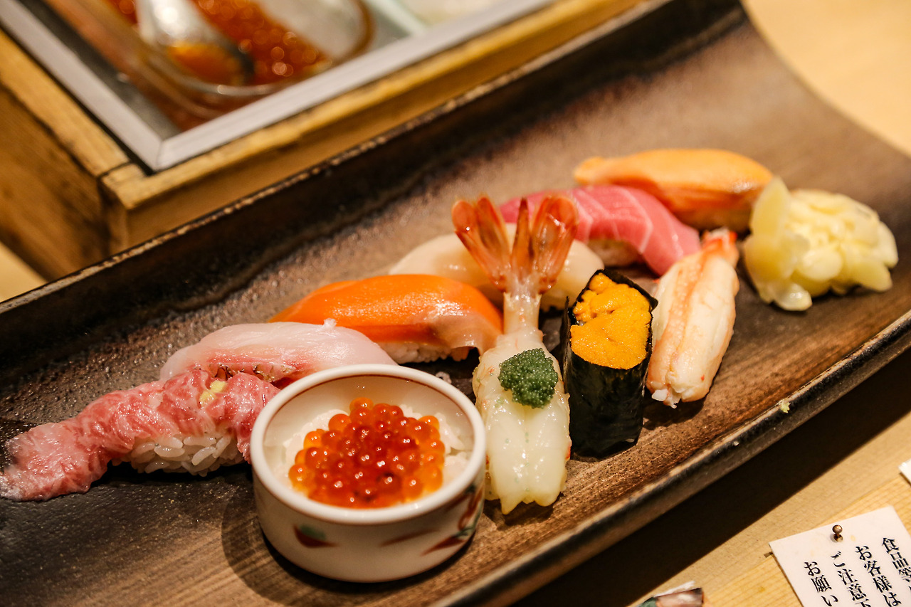 마사즈시의 입구에 들어서자 《미스터 초밥왕》 포토존이 먼저 반겼다. 건물은 총 4층인데, 1층은 바, 2~4층은 연회장과 홀이 마련돼 있다. 마사즈시는 오타루 본점 이외에도 도쿄(긴자·신주쿠), 나고야 사카에, 심지어 태국 방콕까지 매장을 확장 중이다. 식당 안은 꽤 조용하다 못해 고즈넉했다. 초밥을 만드는 장인들의 움직임만 분주했다. 한국어로 적힌 메뉴판이 있어 주문은 전혀 어렵지 않았다. 가장 잘 나가는 메뉴인 4,320엔짜리 세트(2018년 1월 당시)를 주문했다. 초밥 10개가 영롱한 빛깔을 뿜어냈다. 참치 뱃살과 옆구리살, 연어, 가리비, 대게, 성게, 연어알, 제철 흰살생선 등이 어우러져 나왔다. 서빙하는 스태프는 사진을 찍어 소셜 네트워크 계정에 올려주면 초밥 하나를 더 준다고도 했다. 주방장은 캐나다 근해에서 잡은 참치와 특대 작약 새우를 추가로 추천해 주었다.