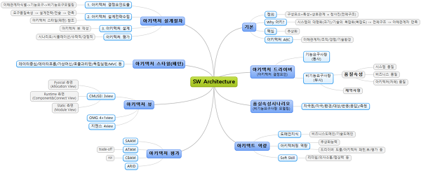 소프트웨어 아키텍처에 관한 지식영역을 정리한 마인드 맵이다. 개발자에서 아키텍트로 발전하기 위해서 숙지를 권장한다.