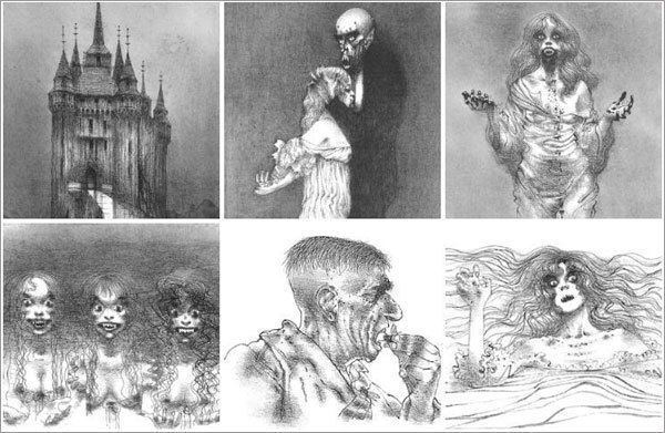 <찰스 키핑>의 드라큘라 삽화를 보면 어두운 세계에 대한 묘사가 탁월합니다. 찰스 키핑이 사랑받는 이유는, 빛이 있으면 그림자가 있는 것처럼 절망과 어두움이 역으로 빛의 세계의 그리움과 갈망을 만들기 때문이 아닐까 싶네요. 눈물과 콧물로 어두운 감정은 토해내야 시원해지는 것처럼, 찰스 키핑은 어두운 현실을 몽환적인 인상으로 만듭니다.