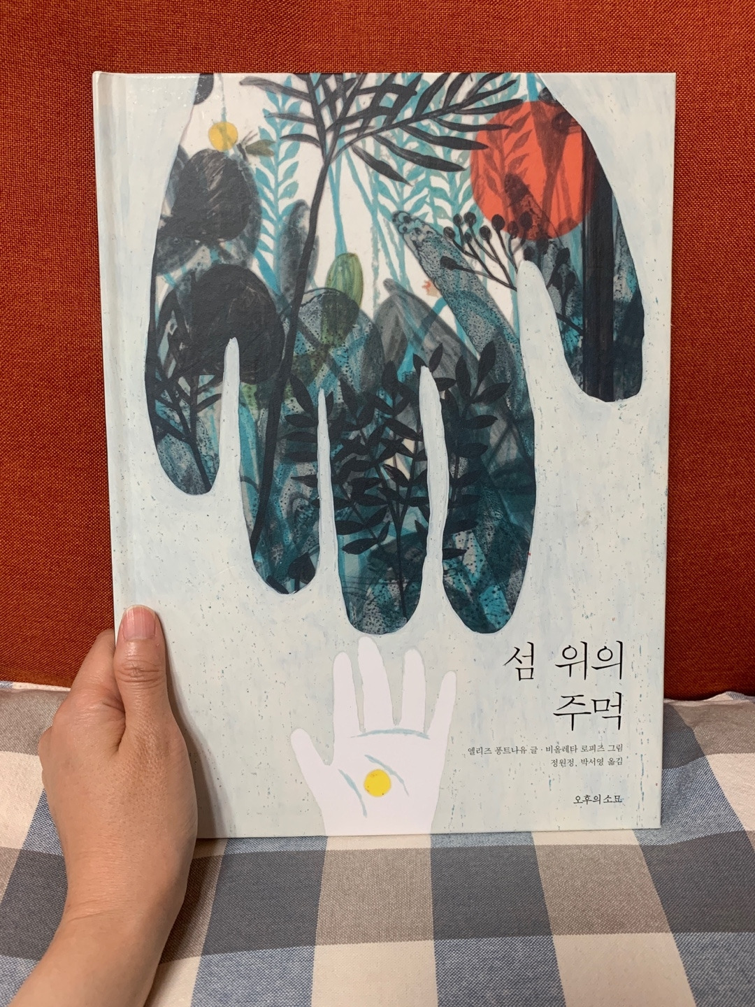 루이 할아버지가 만들어 낸 서로 솔직하게 말하자는 뜻입니다. 이 책의 제목이 유래된 말이기도 하죠. '섬 위의 주먹'을 형태 그대로 연상시킬 수 있는 내용은 아무것도 없습니다. 바다가 아닌 온통 숲의 이미지가 가득하고, 주먹이 아닌 펼쳐진 손으로 할아버지로부터 기타를 선물 받습니다. 기타를 치기에 아직 소년의 손은 작습니다. 하지만 할아버지의 걱정 말라는 얘기처럼 우린 책을 덮기 전 알게 됩니다. 정원의 식물처럼, 약동하는 나무처럼 소년 또한 자연과 사람을 관찰하고 배우면서 성큼 성장하고 자라고 있다는 사실을요.