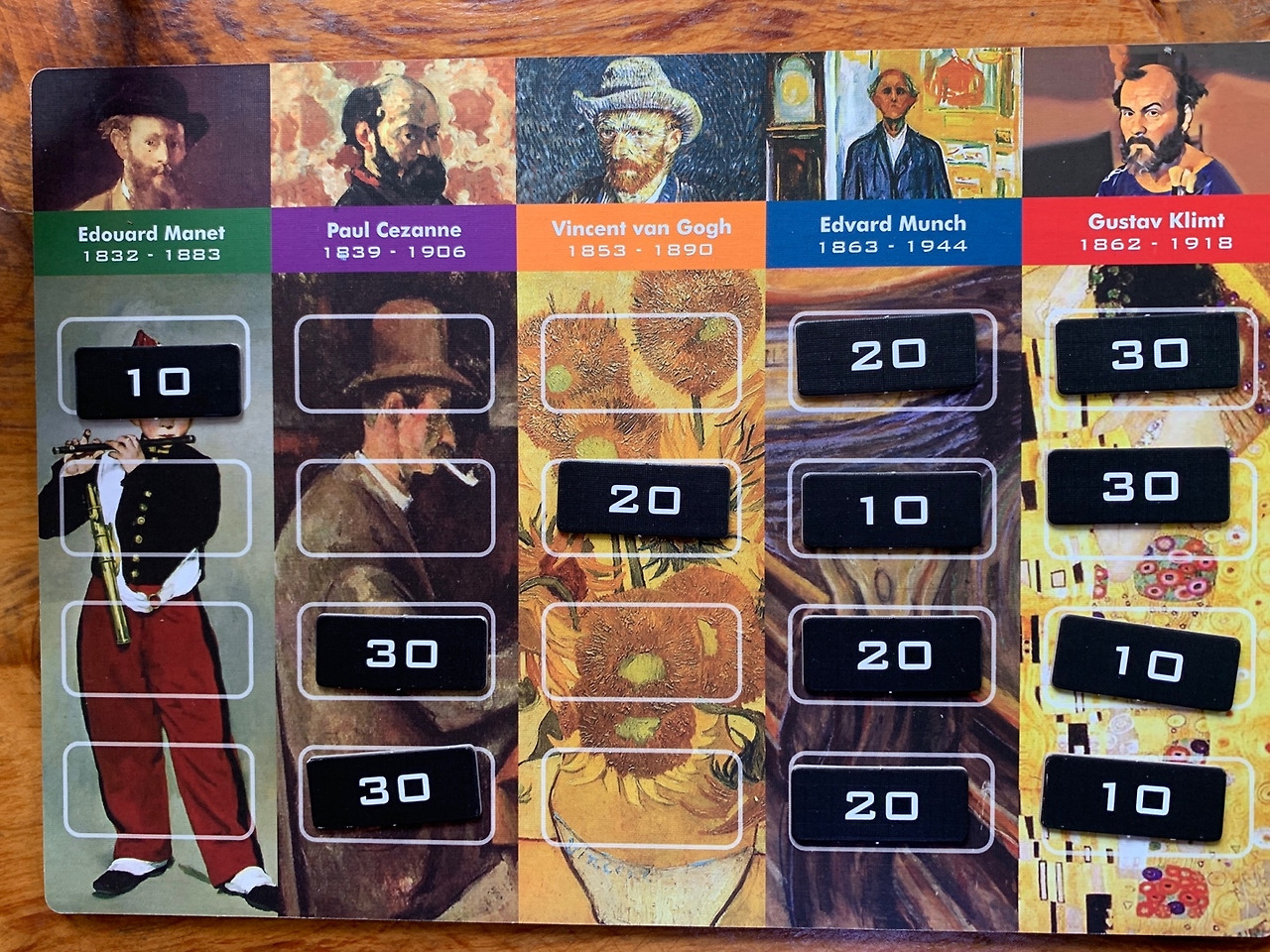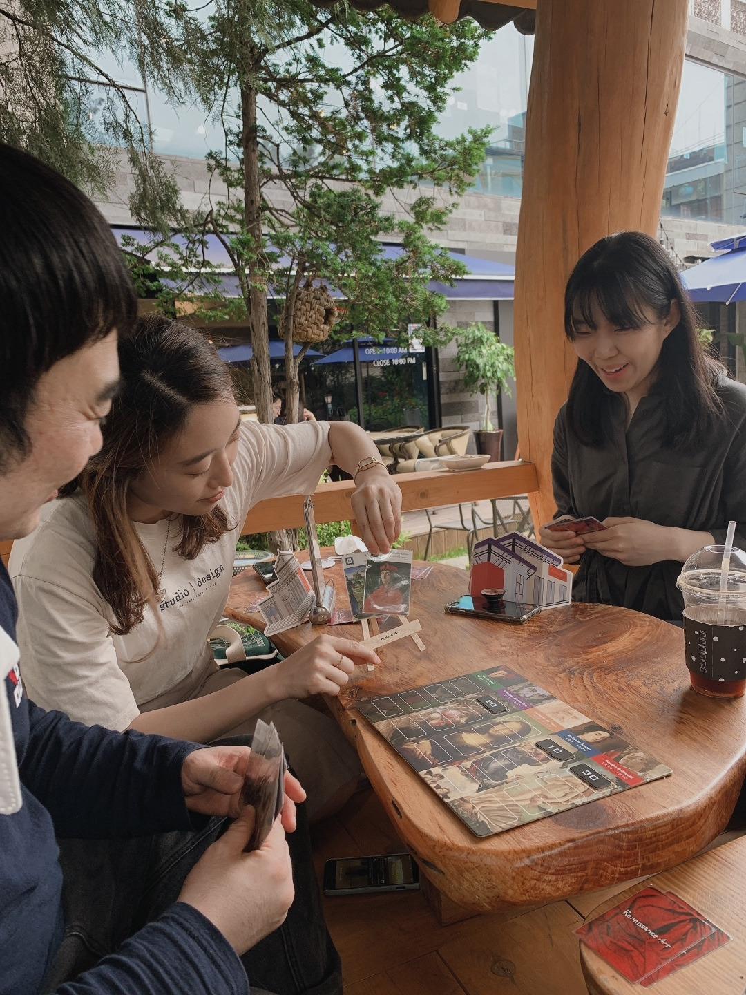 미술 경매를 통해 명작들을 구매하는 보드게임인 모던아트를 함께 해 보았습니다. 메탈 코인, 나무 경매봉과 받침대 세트 등 화려한 구성품을 자랑하는 게임이죠. 르네상스와 모던아트 2가지 종류의 작품을 선택해서 경매를 진행할 수 있습니다. 4가지 경매방식의 차이점을 게임 룰로 이해해가면서 점점 게임에 빠져들고 맙니다. 특히 좋아하는 작가의 콜렉터가 되는 기쁨을 누려볼 수가 있었죠.