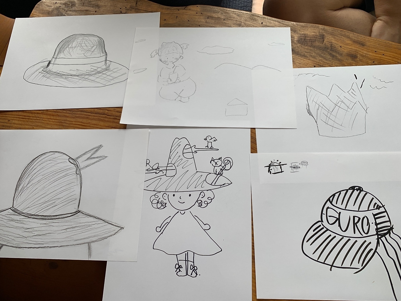 새와 다람쥐 같은 동물들이 함께 살 수 있는 모자, 모자를 쓰면 가고 싶은 곳으로 날아갈 수 있는 모자, 지하철에서 쓰고 있으면 목적지 (ex. 구로)가 표시돼서 자고 있더라도 다른 사람이 깨워줄 수 있는 모자, 한국 전통의 감투?! 까지 같은 주제를 갖고 서로 다양하게 표현하는 상상력과 생각에 유쾌해집니다. :)