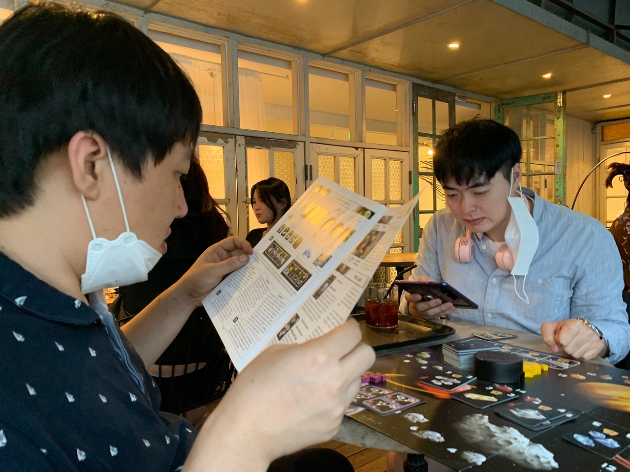 결국 <안드로메다> 게임은 행성을 부르마불처럼 소유해서 점수를 높이는 게 목적인데, 자잘한 곳 여기저기서 행성 개발하던 바라쿠다님을 제가 점수 큰 곳의 행성을 하나를 소유하게 되어 막판에 승부를 뒤집고 우승하는 반전의 시나리오가 있었습니다. 역시 부동산은 좋은 땅에 몰빵 투자가 정답일까요? 게임을 하면서 현실과 유사한 경우를 종종 발견합니다.