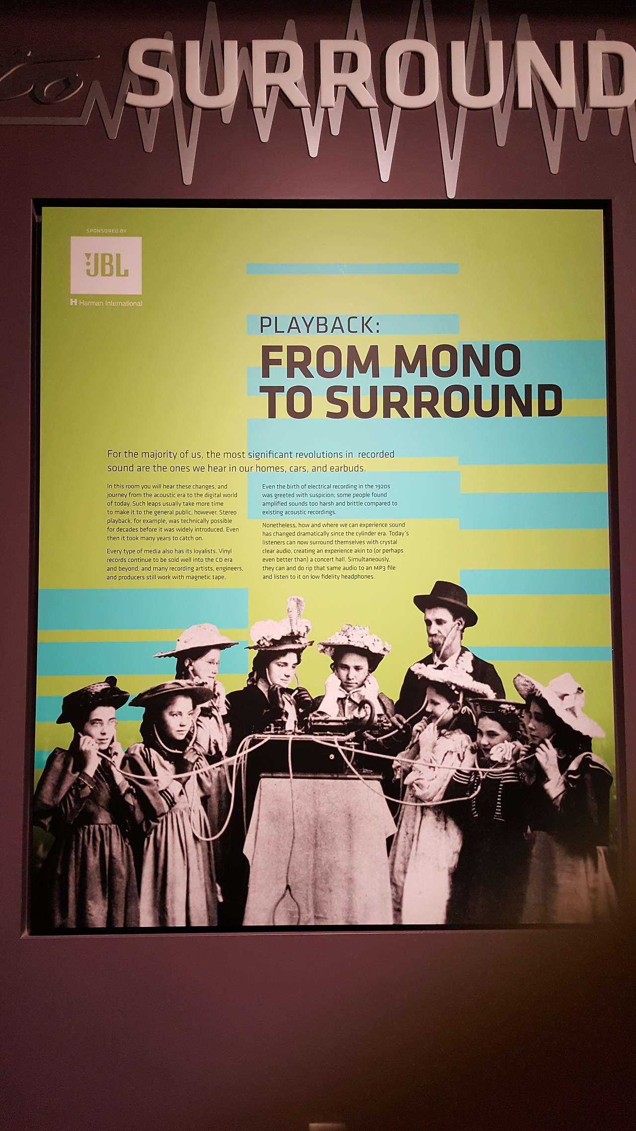 모노와 스트레오 시대로 전이될 때의 놀라움, 홈씨어터의 현장감 등을 이전에 있었던 다른 오디오 기술과 비교해서 들으니 이해도 쉽고 기술이 어떻게 경험의 질을 높이는지를 느끼게 해주는 전시였다.