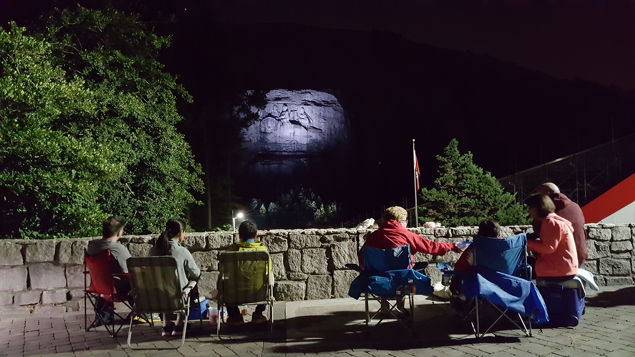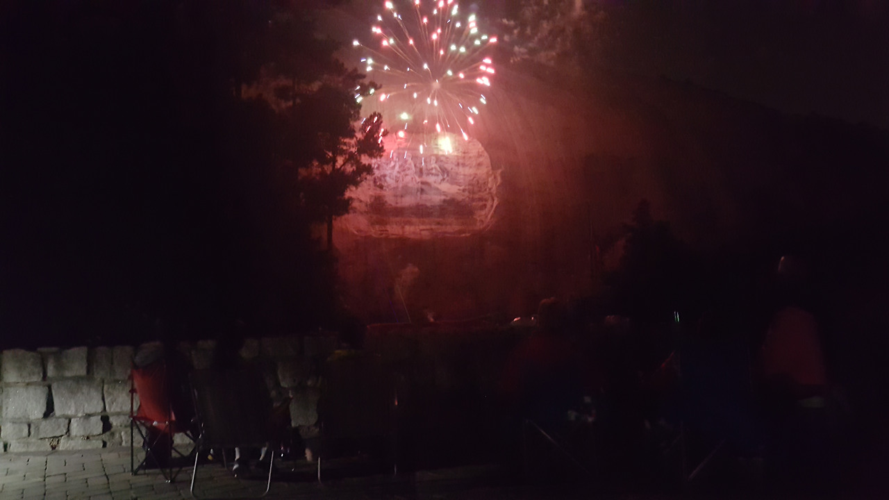 스톤마운틴은 정상에서 바라보는 풍경과 더불어 봄부터 가을까지 밤에 열리는 레이저 쇼가 유명하다. 이왕 가보는 것 레이저 쇼까지 구경해보자라는 생각에 해질무렵 시간을 맞추어 갔는데 생각보다 불꽃놀이를 비롯하여 규모도 크고 미국 남부, 특히 조지아를 상징하는 대표 음악들을 한자리에서 들어볼 수 있어서 굉장히 인상깊었다.
