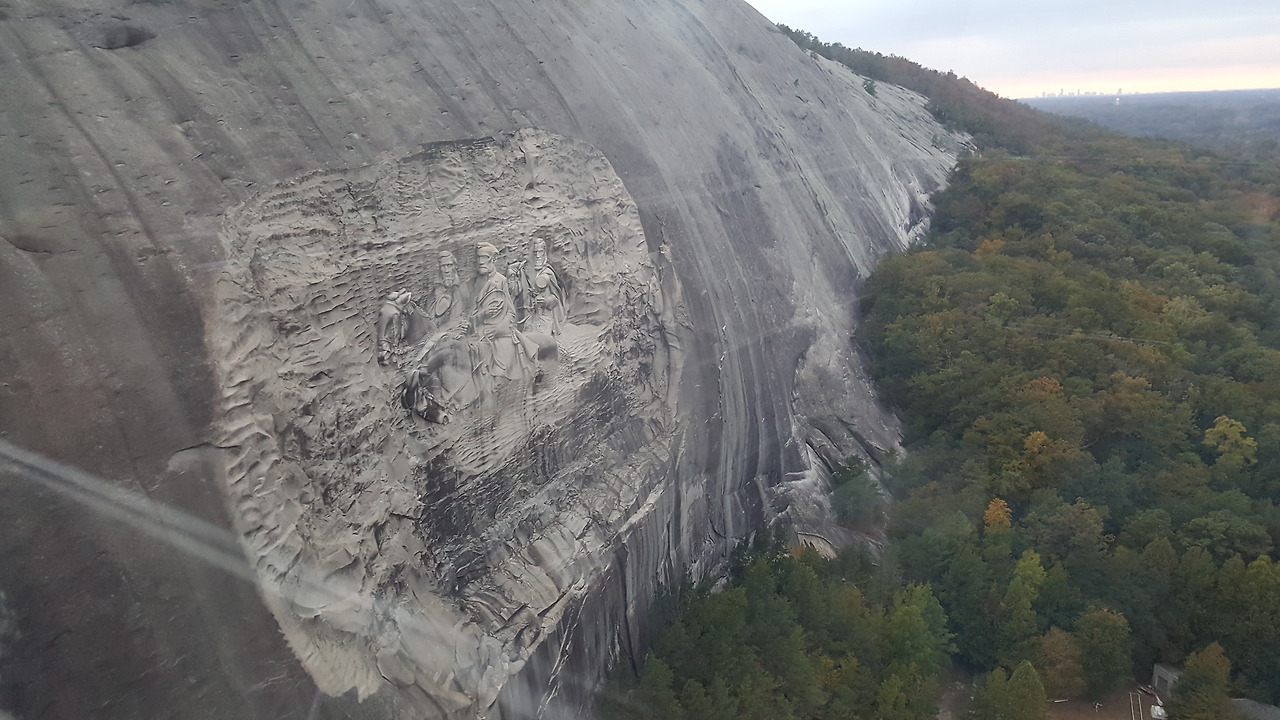 스톤마운틴으로 올라가는 방법은 케이블 카를 타거나 직접 등산하는 방법이 있다. 케이블 카를 타고 올라가면서 조각상 사진을 찍어 보았다. 멀리서 보면 작아 보이지만 리 장군의 코 길이만 1.5m이고 얼굴 크기만해도 6.3m에 이른다. 바위에 새겨진 영웅들은 어떻게 보면 결국 패잔병인데도 불구하고 남부 사람들은 이들 장군들에 대해 특별한 자긍심을 갖고 있다.