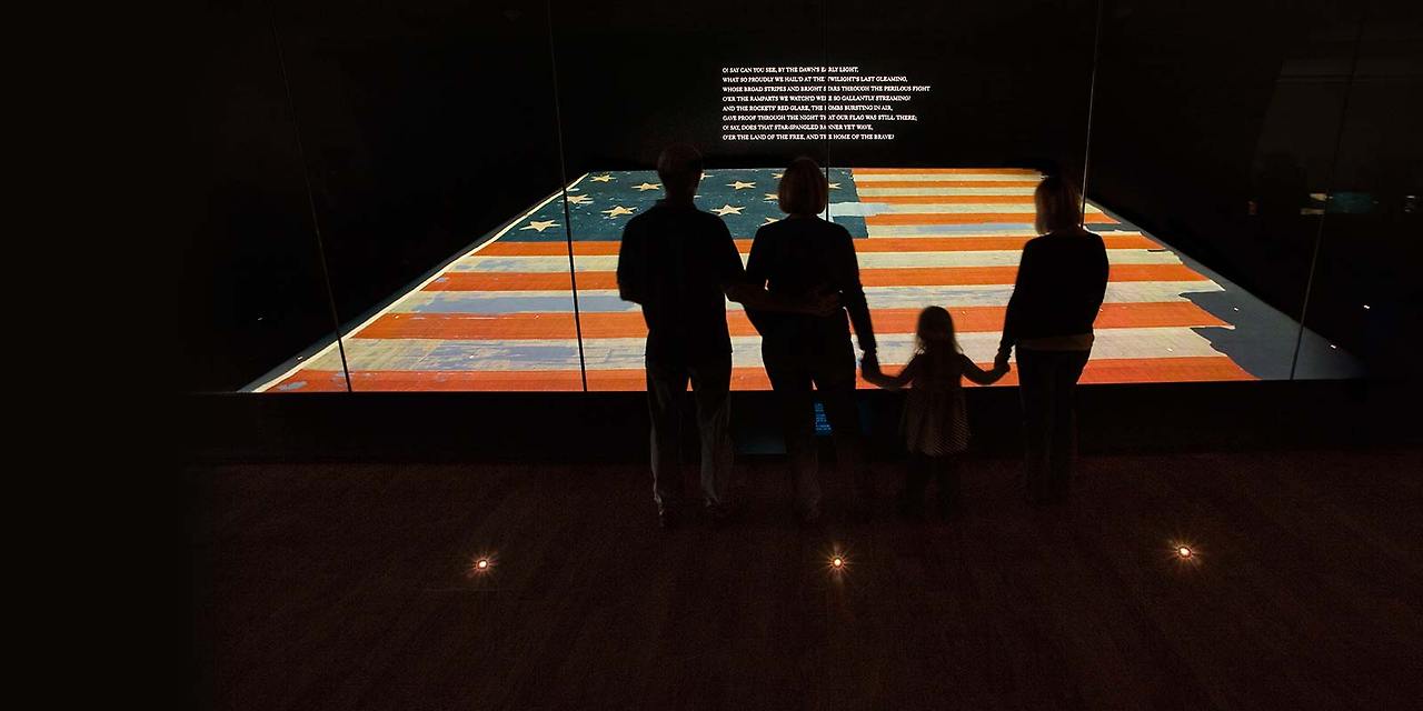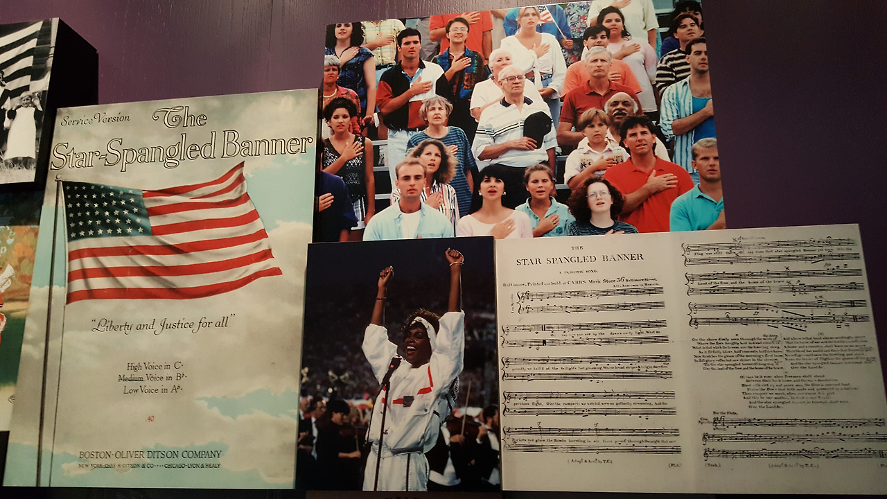 이 곳을 방문하려면 한쪽 코너의 어두컴컴한 통로를 지나야하고 어두운 조명속에서 거대하고 낡은 미국 국기를 볼 수 있는데, 이곳만 유일하게 사진 촬영이 금지되어 있고 엄숙한 분위기로 관람을 하게된다. 1814 년 9 월 14 일 볼티모어의 요새 맥 헨리 (Fort McHenry)에있는 미군 병사들은 영국군에 대한 결정적인 승리를 축하하기 위해 거대한 미국 국기를 게양했다. 이 국기의 넓은 줄무늬와 밝은 별은 프랜시스 스콧 키(Francis Scott Key)에게 노래에 대한 영감을 주게 된다. 프랜시스 스콧 키는 영국의 To Anacreon in Heaven이라는 노래의 멜로디에다 개사를 하여 노래를 만들었다. 이 노래는 남북전쟁과 20세기 초에 인기를 얻기 시작해서 1931년 미국 의회에서 공식으로 미국의 국가로 명명한다.