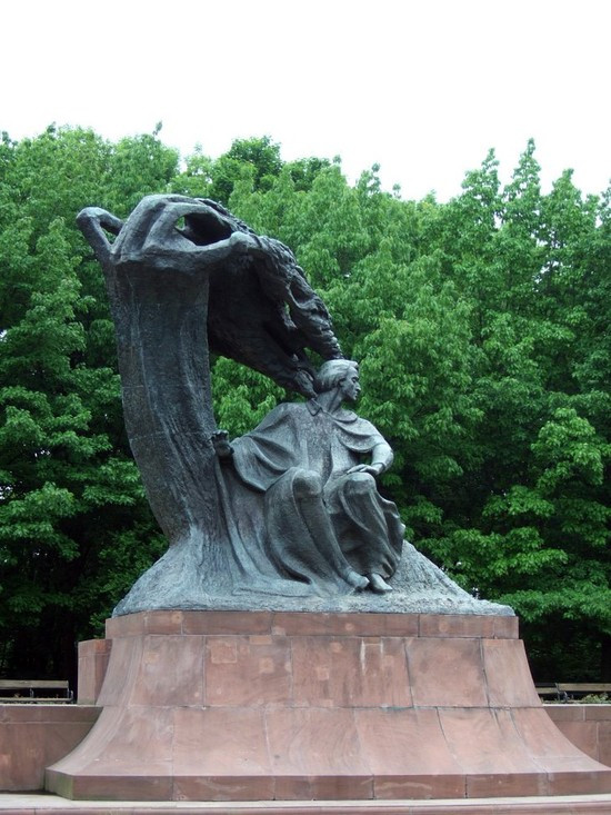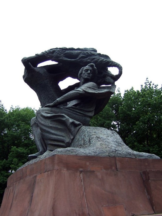 이제는 돌아가야 할것 같다고 생각하던 즈음, 저 멀리 사람의 형체가 보였다. 나무 위에 앉아있는 사람의 모습! 바로 저 동상이 쇼팽인가 보다. 공원을 산책하면서 듣던 쇼팽의 음악이 결국 쇼팽이 있는 곳까지 인도해주었구나. 처음 보았을 때는 얼굴 옆 모습 밖에 안보여 좀 더 가까이 다가갔다. 사선적인 구도에서 느껴지는 바람이 조각한듯한 자유로운 기풍, 금방이라도 흘러가는 악상을 흑백의 피아노위에 쏟아낼 듯한 저 손동작, 꿈 꾸는 듯이 사색에 잠긴 쇼팽의 표정.