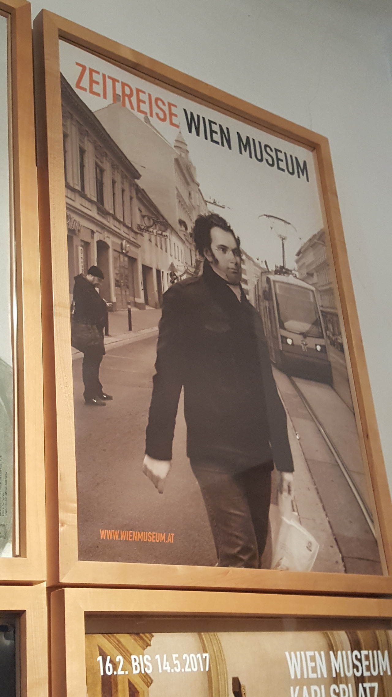 박물관 안쪽 안내데스크 근처에 있었던 포스터. 오늘날의 거리를 쇼핑백 하나 들고 배회하는 슈베르트의 모습이 웃기면서도 낯설지 않다. 그는 사실 최후를 맞이 한게 아닐지도 몰라.