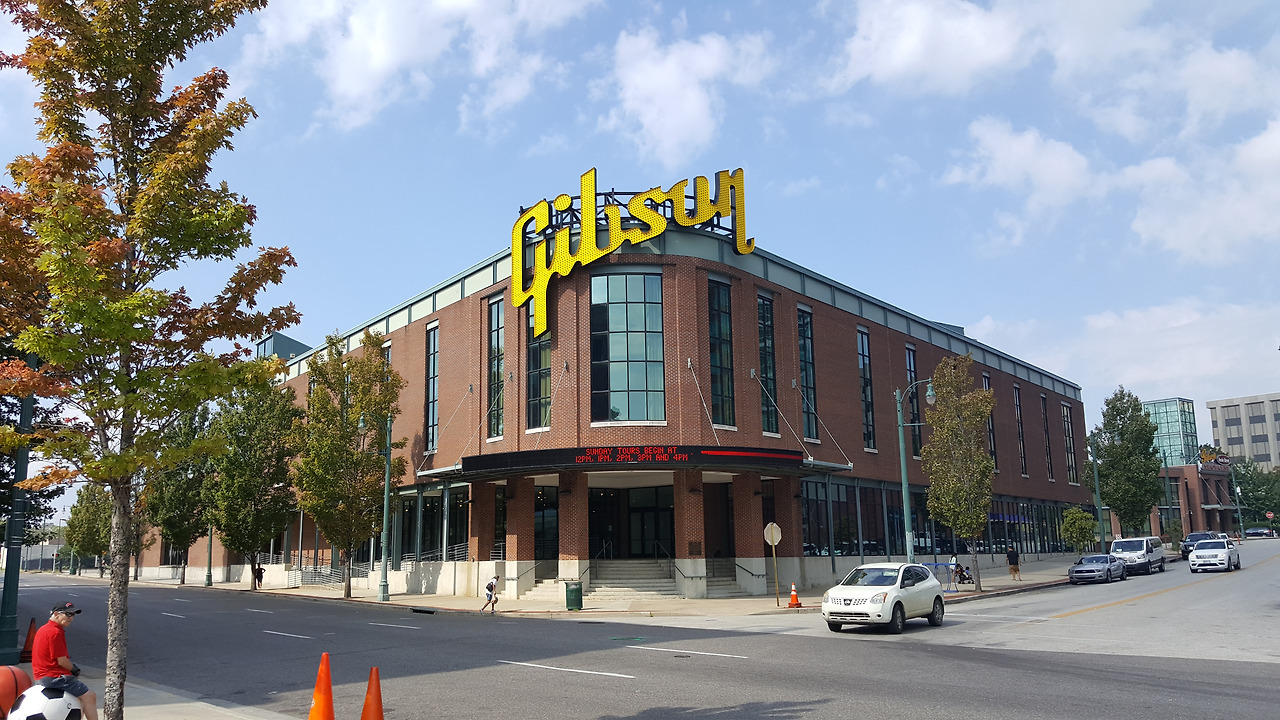 락앤소울 뮤지엄 건너편에 Gibson 기타 건물이 크게 자리 잡고 있다. 기타 만드는 공정을 투어로 제공한다는 정보를 듣고는 하루 전 미리 예약하였다. 투어 시간을 기다리는 동안 기타 샵에서 고가의 기타들도 시험삼아 연주해 볼 수 있다. 기타를 직접 만드는 공장 안으로 들어가서 설명을 듣기 때문에 일하고 있는 직원들도 만나 볼 수 있는데, 혹시 모를 안전사고를 대비해서 보안 안경을 착용하게 한다. 생각 보다 많은 부분이 수작업으로 제작되고 있었고, 나무 먼지 가루가 여기 저기 날리는 험한 환경에서 여러 수작업을 거쳐야 비로서 하나의 멋진 기타가 만들어진다는 점을 직접 확인해 볼 수 잇었다.