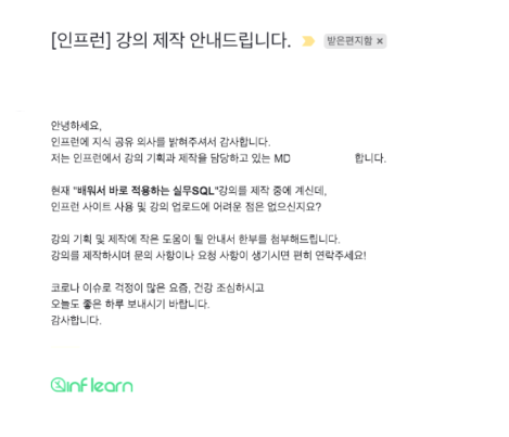 지식공유를 신청하면 친절하게 메일을 보내주신다.(MD님 성함은 혹시 몰라 삭제)