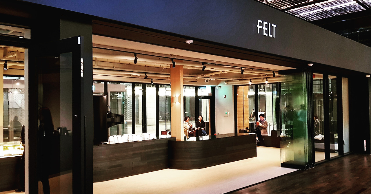 카페의 위치를 보나 영업시간을 보나, 펠트커피의 성격은 찾아가 머무르는 공간이라기보다 지나며 들르는 곳이라는 생각이 든다. 만약 신촌을 지날 일이 없다면, 광화문 D타워에서도 펠트커피를 만날 수 있다. 건물의 로비층인 지하 2층으로 내려가면 창전동 1호점과는 사뭇 다른, 모던한 2호점이 ‘FELT’ 간판을 달고 당신을 기다리고 있다.