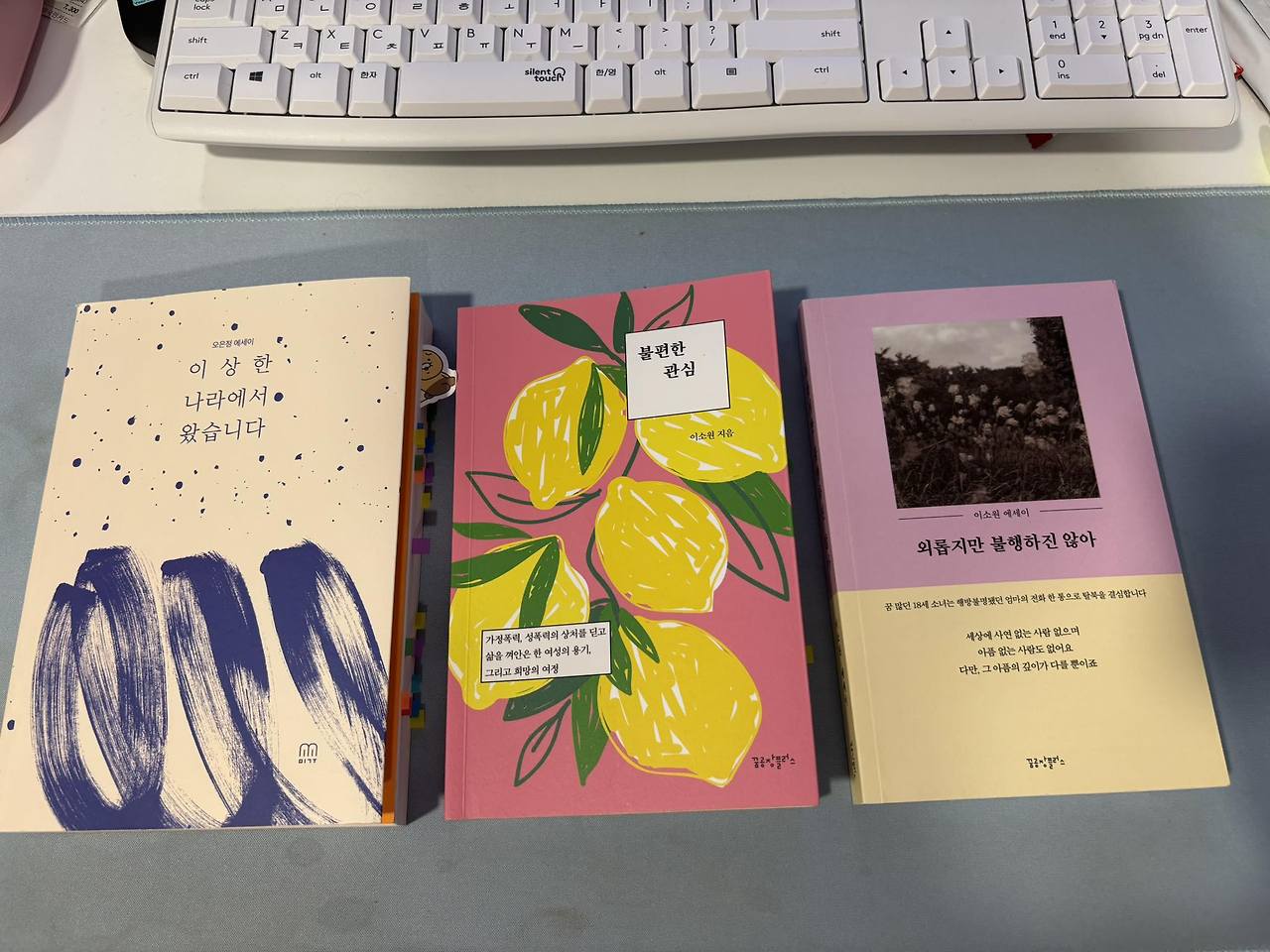 이소원 작가는 <외롭지만 불행하진 않아>와 <불편한 관심>을 출간했고, 오은정 작가는 <이상한 나라에서 왔습니다>를 출간했습니다. 두 작가의 세 책을 읽으며 공감하다가 웃기도 하고 고통스러움을 느끼다가 희망을 발견하며 감정이 복잡해졌습니다.