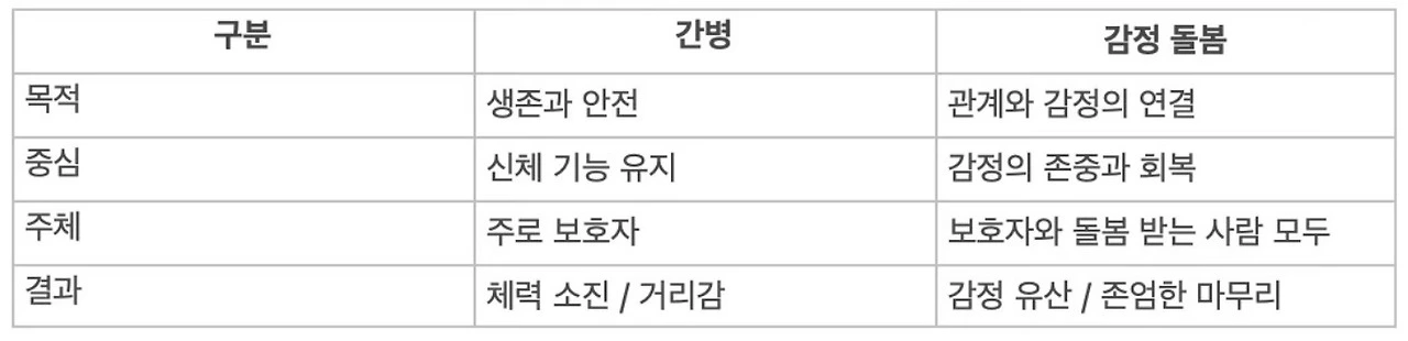 감정 돌봄은 [간병의 기술]이 아니라 [삶의 태도, 예감, 감정 리터러시]에 가까워요