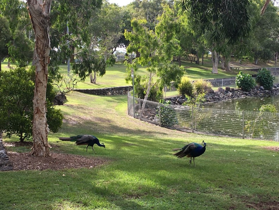 도시 한복판에 위치한 공원에서 무탈하게 살아가는 공작새