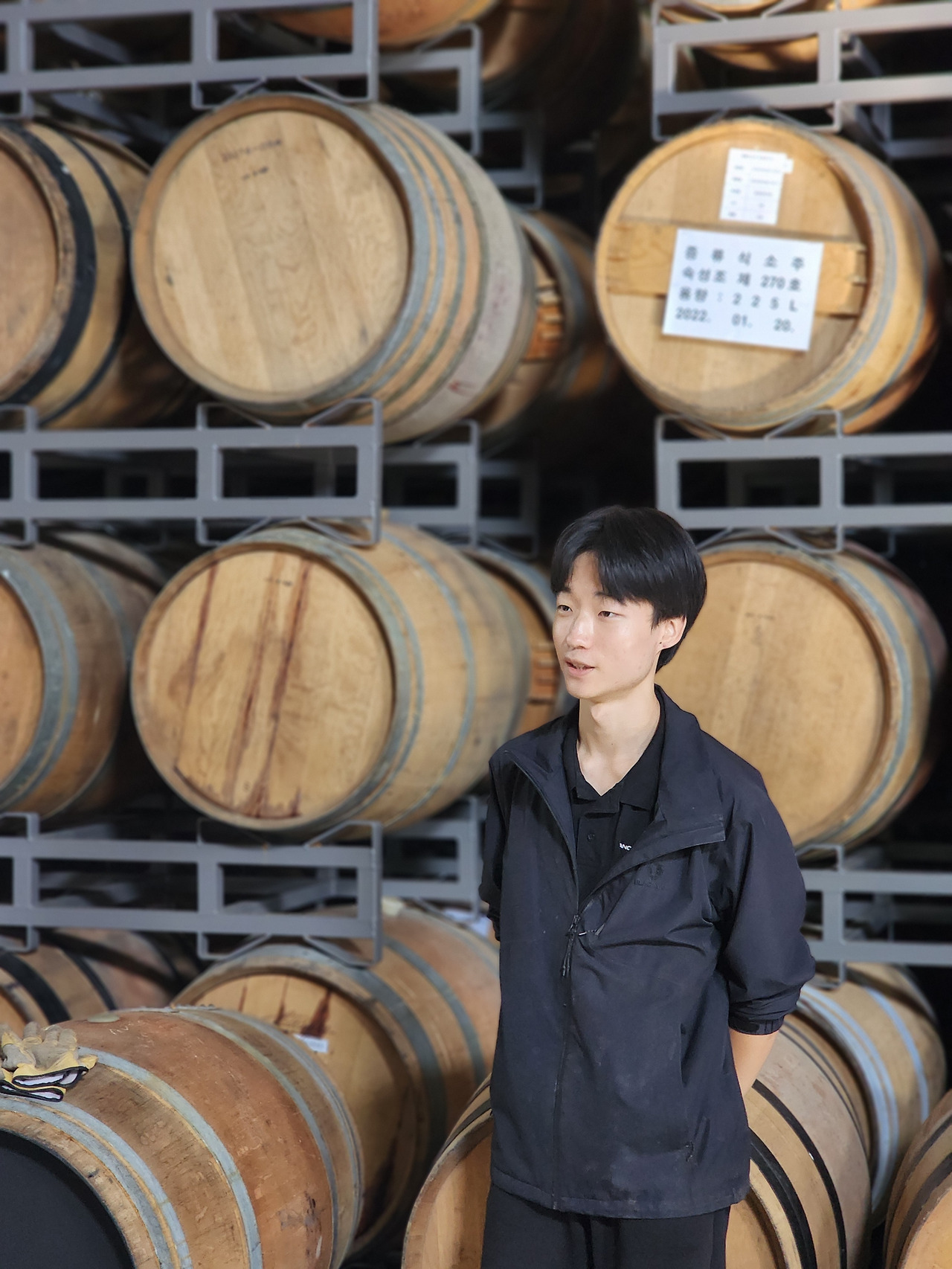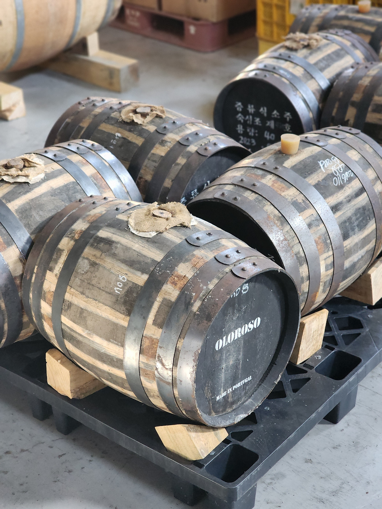 숙성 방식 또한 남다르다. 다농바이오는 매년 포르투갈 쿠퍼리지와 직접 계약을 맺고 100~150개의 오크통을 들여온다. 이미 400여 개의 배럴이 증류소에 쌓였고, 최근에는 국산 참나무 오크통에도 눈을 돌리고 있다. 한국형 캐스크 숙성의 가능성을 탐구하며 직접 포르투갈에 건너가 캐스크를 고르는 수고를 아끼지 않는다. 그 장면에서 나는 양조인으로서 묻혀 있던 열정이 다시 피어나는 것을 느꼈다.