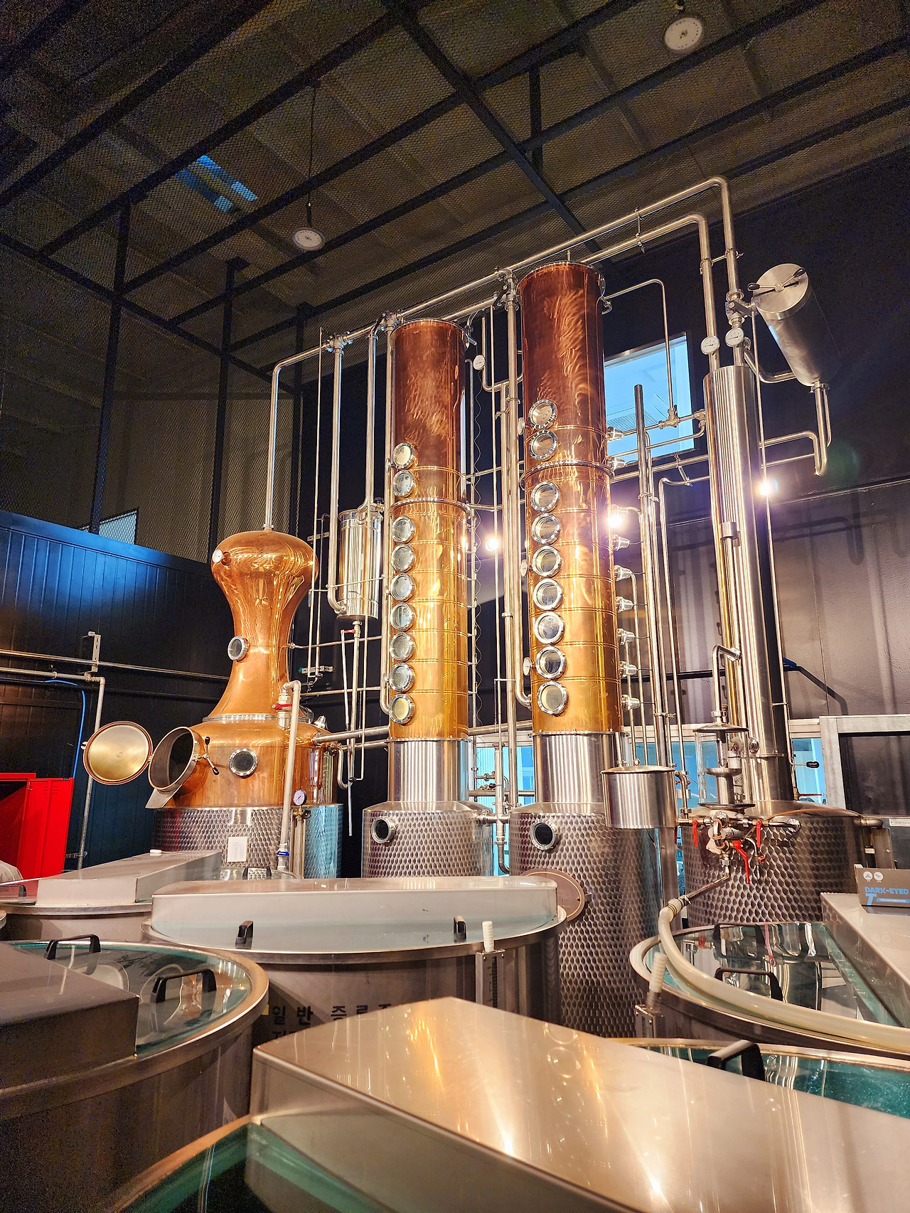 이 모든 중심에는 독일 코테(Kothe)사의 구리 증류기가 있다. 두 개의 9단 칼럼이 결합된, 사실상 18단 정밀 구조의 설비. 가격은 3억 원을 훌쩍 넘어 현재는 10억 원에 이른다고 한다. 거친 향을 거르고 섬세한 향을 남기는 이 장치는 바닐라와 배의 고소하고 달콤한 향을 술 속에 입혀 넣는다. 불을 다루는 장인의 손끝에서 향은 하나의 조각보처럼 엮여 갔다.