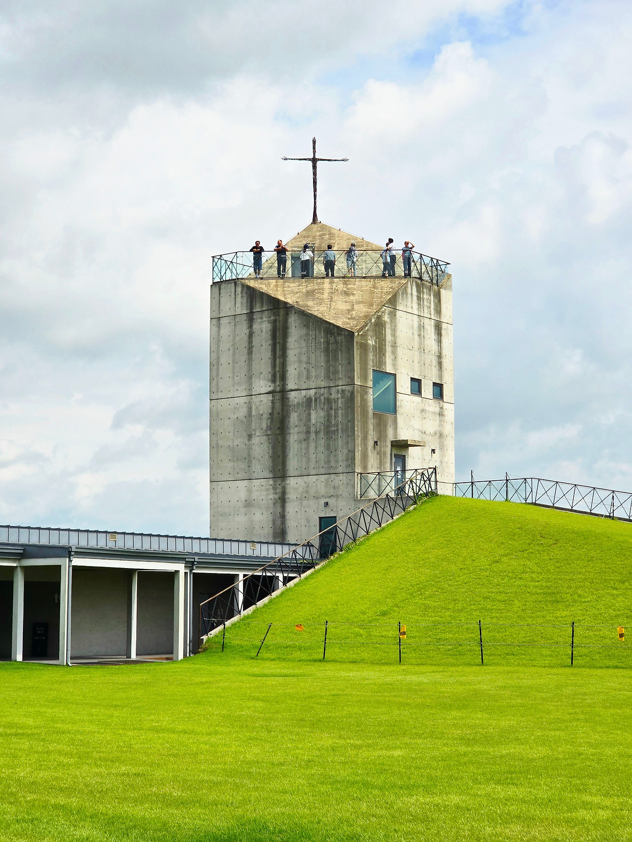 도착하고 잠시 뒤, 정각도 아닌 10시 47분에 종소리가 울렸다. 이유를 따지기보다 풍경과 어울린 소리의 청량함이 먼저 가슴에 닿았다. 소리는 빛과 함께 성지의 공기를 맑게 씻어 주었고, 우리는 가장 높은 전망대로 발을 옮겼다. 옥상에서 내려다본 360도 파노라마는 들판의 결, 마을의 호흡, 하늘의 여백을 한 장의 프레임 안에 포개어 보여 주었다.