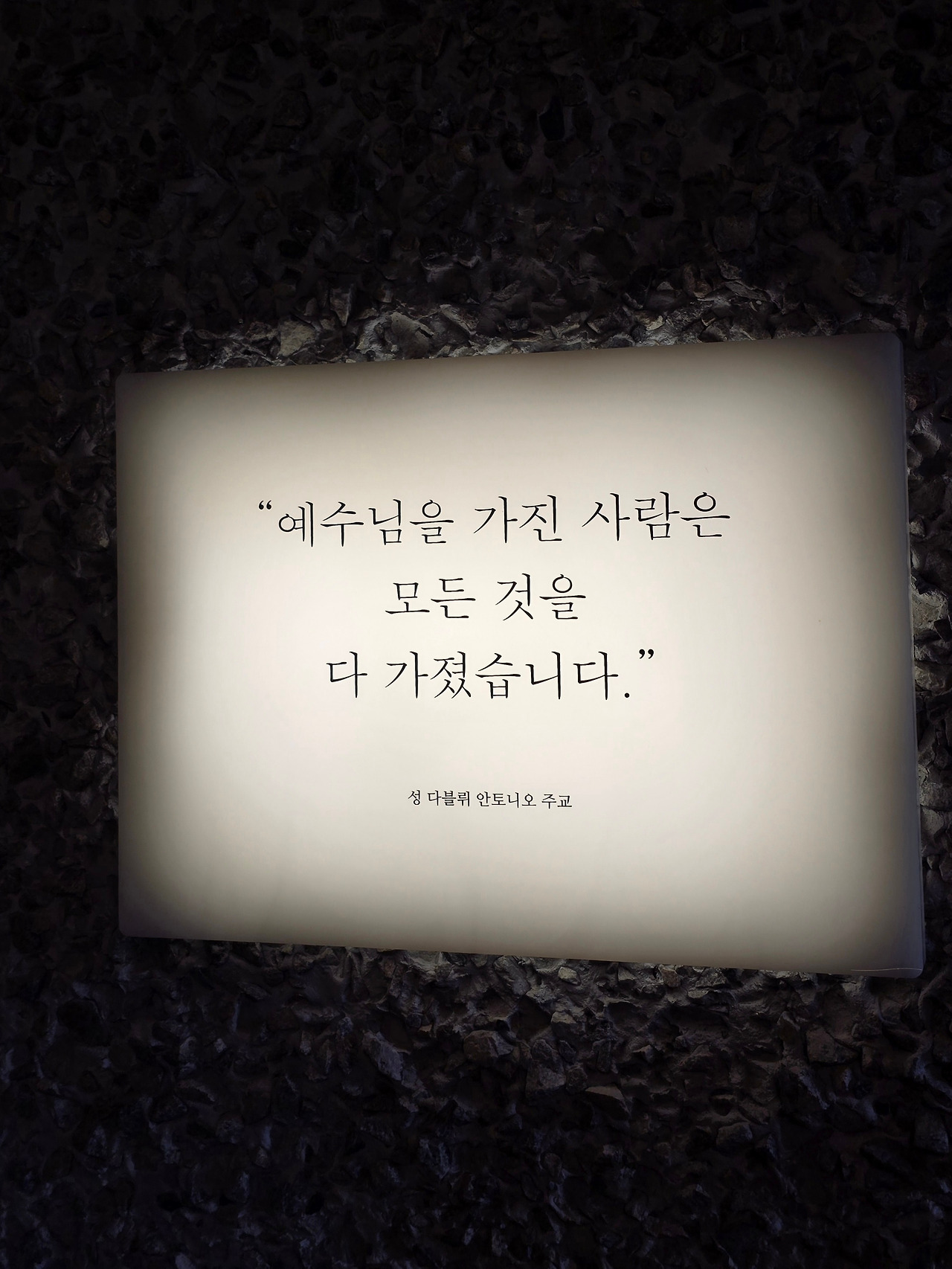 건축은 그 박자를 눈으로 듣게 한다. 순교 140주년이던 2006년 완공된 성 다블뤼·성 손자선 기념성당은 고딕의 수직을 좇지 않고, 낮고 단정한 선으로 땅의 호흡을 닮았다. 2014년 문을 연 다블뤼 기념관은 외부 경사로가 옥상 전망대로 이어져 시선을 위로만이 아니라 ‘사이’로 흐르게 한다. 2017년 지하에 들인 순교미술관은 어둠과 빛의 대비 속에 이종상 화백의 기록화와 다섯 성인의 영정을 품었고, 작품 앞에 서면 나도 모르게 호흡이 느려진다. 잔디 구릉 사이사이에 박힌 작은 경당들은 성인에게 바쳐진 ‘기도의 방’이고, 승리의 성모상·야외성당·십자가의 길은 점·선·면을 이루어 ‘걷는 기도’의 도형을 완성한다. 그렇게 공간은 액자의 틀과 여백을 함께 갖춘다—틀이 형식을 주고, 여백이 숨을 준다.
