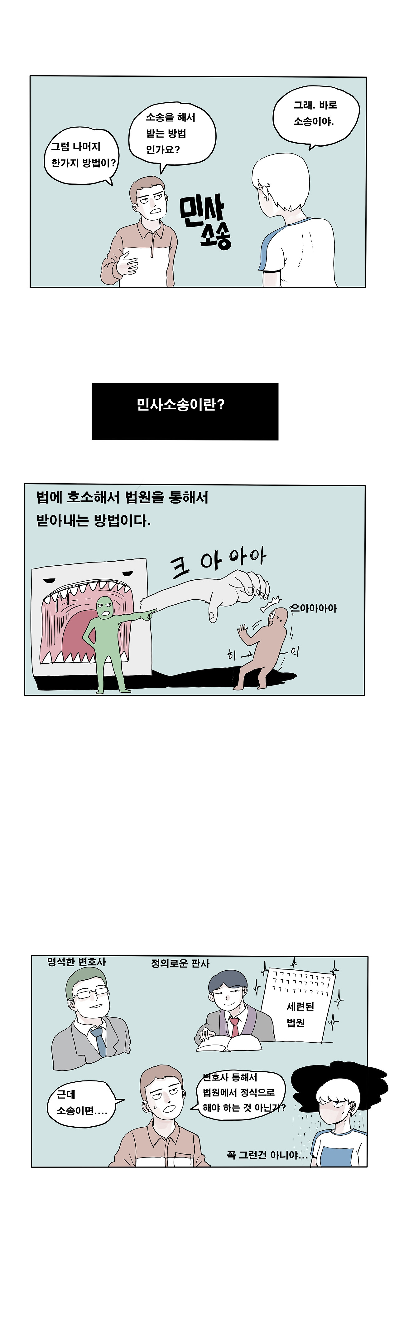 일반적인 민사소송은 법정에 출석해서 변론을 해야 합니다. 법률에 대해 문외한인 사람이 법정에 가서 판사님들을 만나서 변론한다는건 여간 어려운 일이 아닙니다.