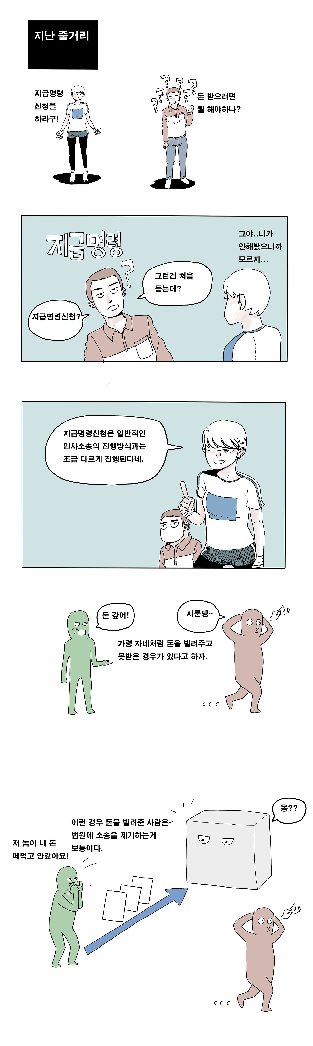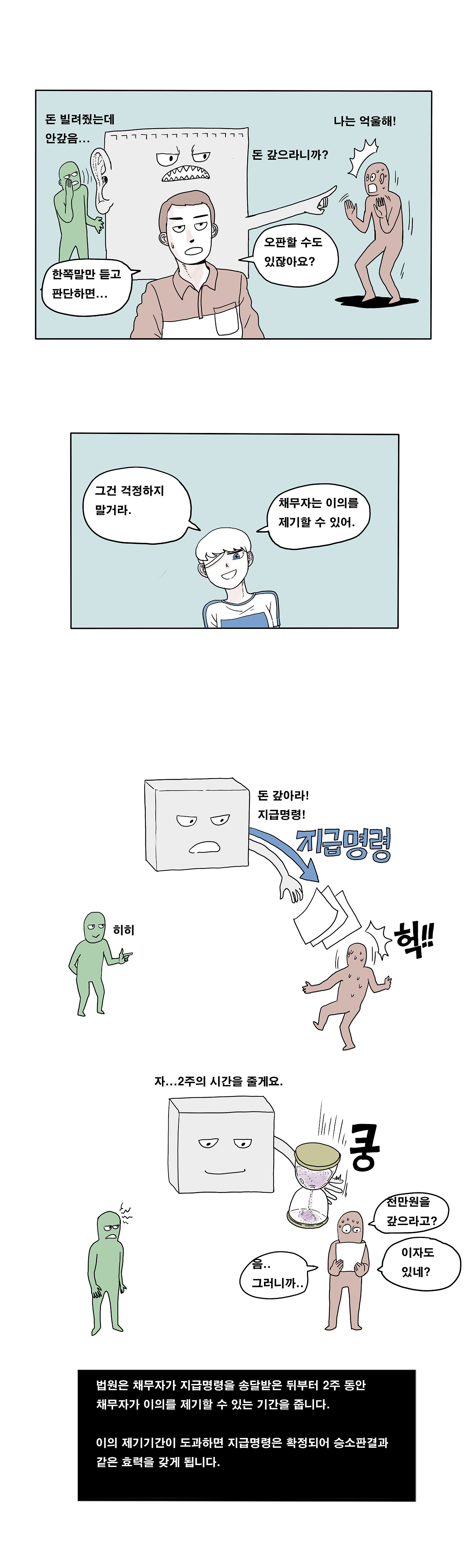 (4) 법원이 돈 빌려간 사람에게 '야, 너 돈 갚아'라고 명령해주는 법적인 제도입니다.