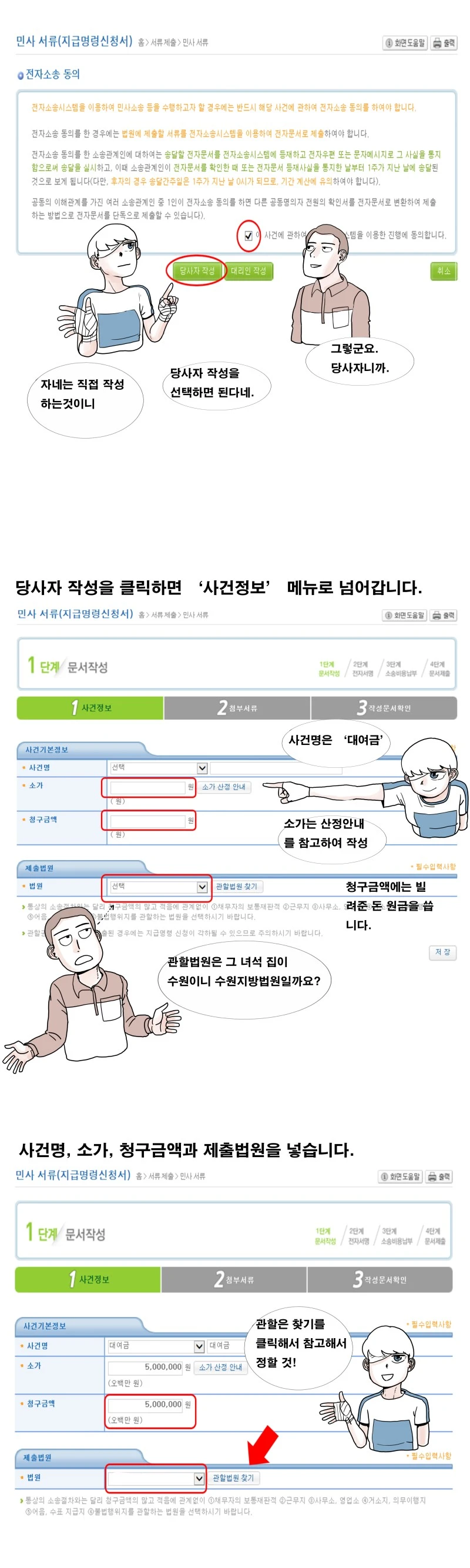 이번에는 실제로 지급명령신청을 직접 해보면서 지급명령신청 절차를 이해해보는 내용입니다.
