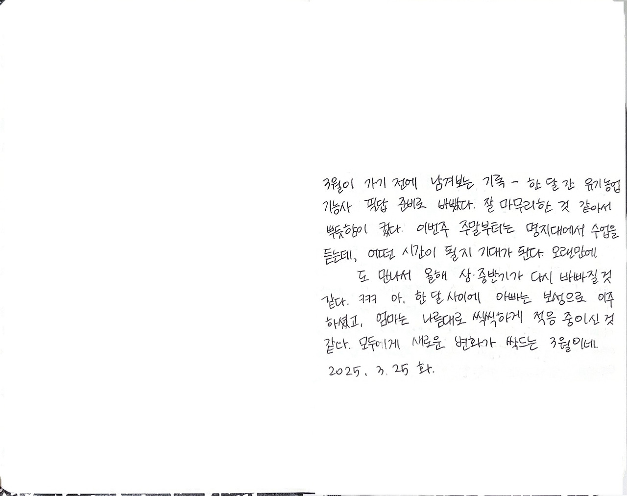 3월이 가기 전에 남겨보는 기록 – 한 달간 유기농업기능사 필답 준비로 바빴다. 잘 마무리한 것 같아서 뿌듯함이 컸다.