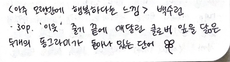 ‘이웃’ 줄기 끝에 매달린 클로버 잎을 닮은 두 개의 동그라미가 돋아나 있는 단어.