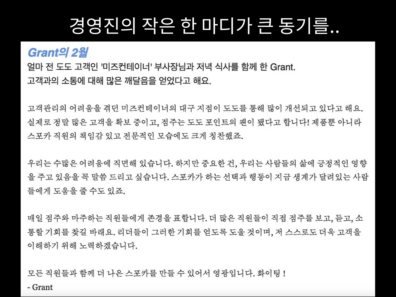 고민 : 경영진과 직원들이 직접 소통할 기회가 줄어든다. 실제로 A 직원이 B 경영진과 인사 외 나눈 대화가 없다는 사실을 들었을 때 놀랐다.