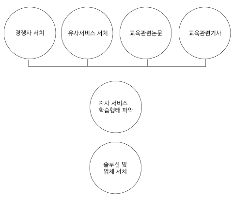 자사 app서비스 분석은 빙산의 일각이었다. 왜냐면 회사에서는 웹, 지면, cd로 된 매체가 학습 시 중요한 정보를 담고 있었기 때문이다. 앱 서비스가 학습 프로세스에 크게 영향을 미치지 않는 콘텐츠로 사용되고 있었기에 특정 사업부의 학습 프로세스에 대해 다시 스터디를 했다.