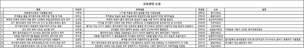 2주에 걸친 심도 있는 데스크 리서치의 진행 결과는 다음과 같다. 우선 논문 같은 경우 영어교육의 타당성과 학습 방향성 등에 대한 내용이 주를 이뤘고, 교육시장을 둘러싼 이해관계자들에 대한 이해를 깊이 할 수 있었다.