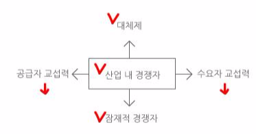 산업에 존재하는 5가지 요소가 해당 산업의 수익률을 결정하는데, 이들 요소가 많고 그 힘이 강할수록 해당 산업의 평균 수익률은 낮아진다고 정의했다. 그 5가지 요소는 다음과 같다.
